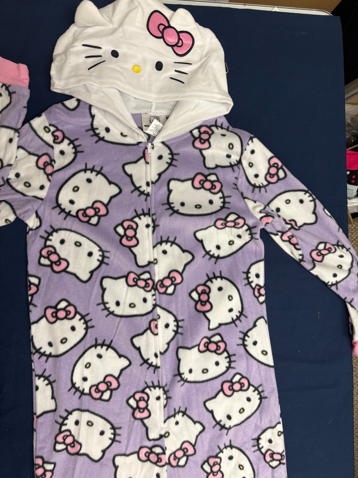 как выглядит Hello Kitty Fleece Pajamas Suit Purple Zipper Sleeper Size M 7/8 фото