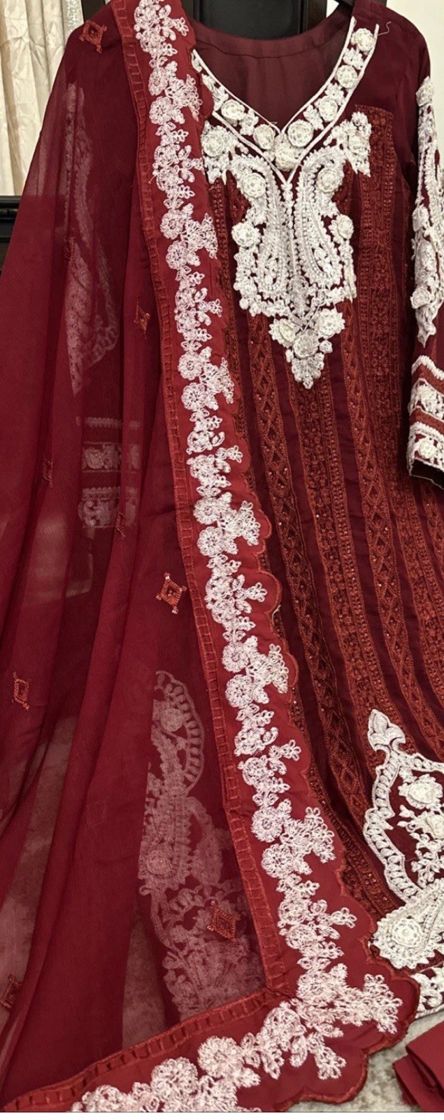 как выглядит Pakistani Indian Shalwar Kameez Chiffon Fancy With Palazzo Bust 42 Lined фото