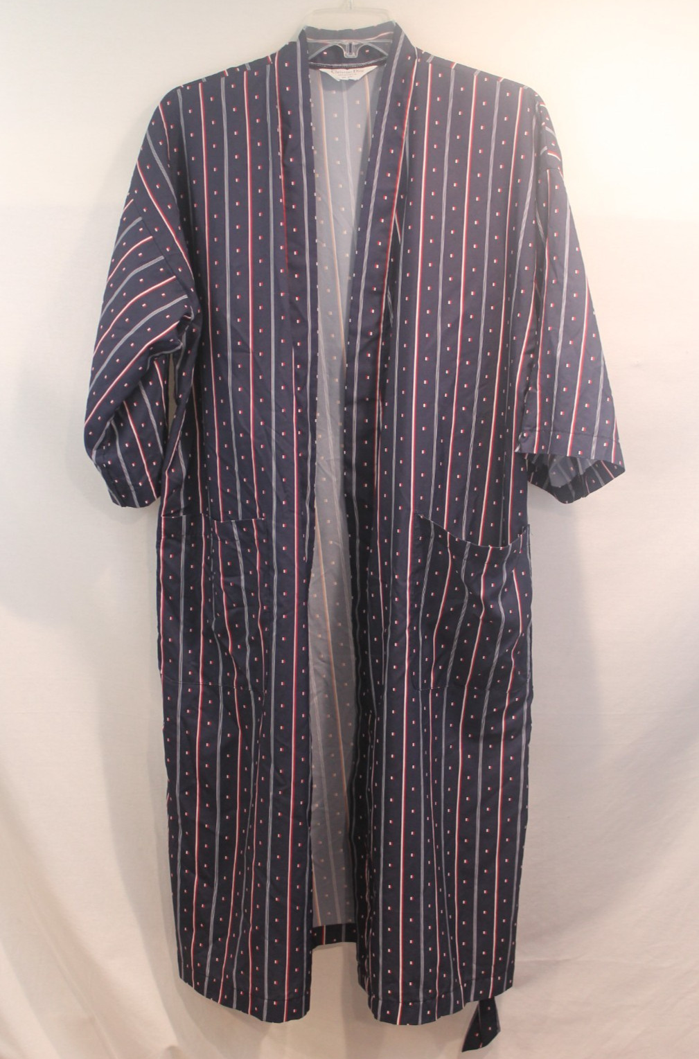 как выглядит Christian Dior Monsieur Vintage Robe Loungewear Mens size OSFM Blue Red Belted фото