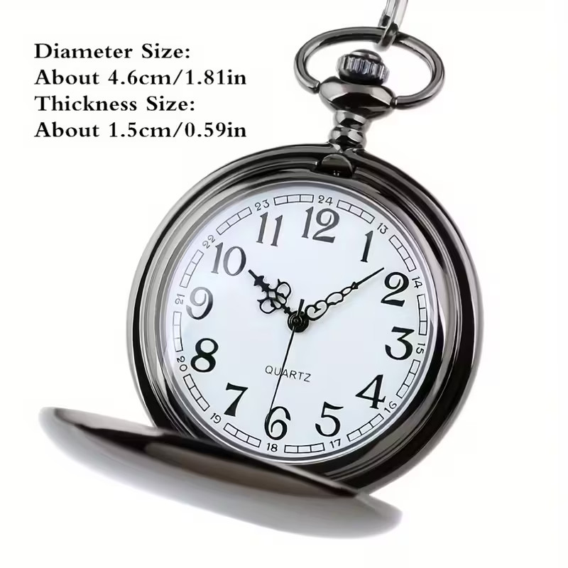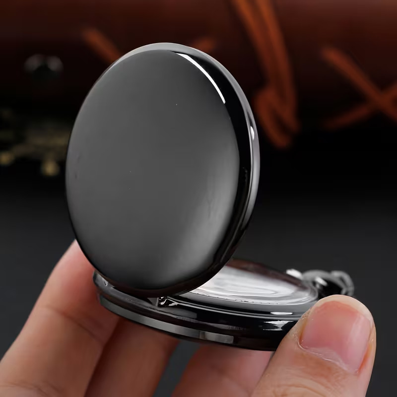 Steampunk Classic Vintage Reversible Glossy Quartz Pocket Watch Necklace Black