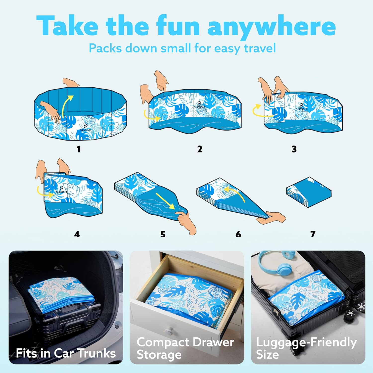 Foldable Dog Kiddie Pool 48x12 Portable Hard Plastic Pet Kids Swimming Pool
