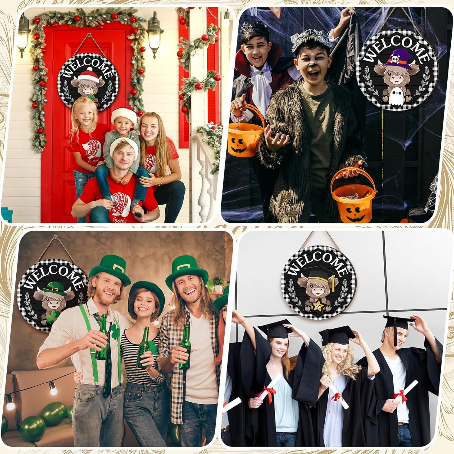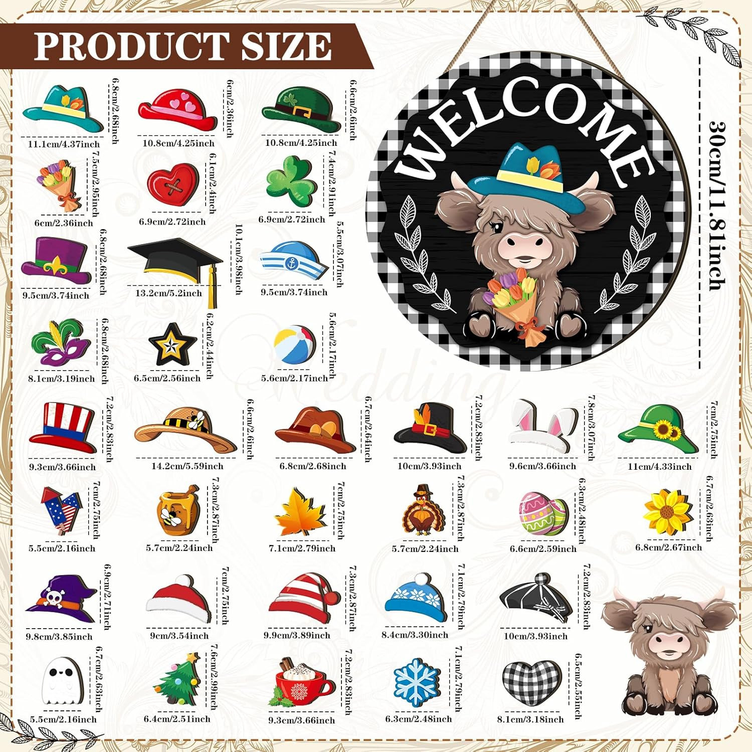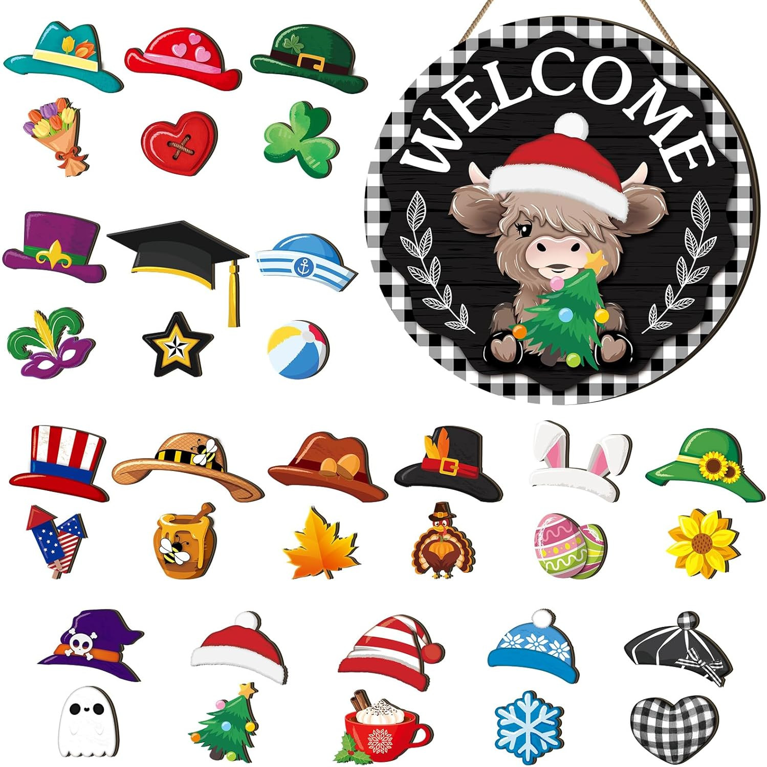 35 Pcs Christmas Interchangeable Highland Cow Welcome Sign Highland Cow Seasonal