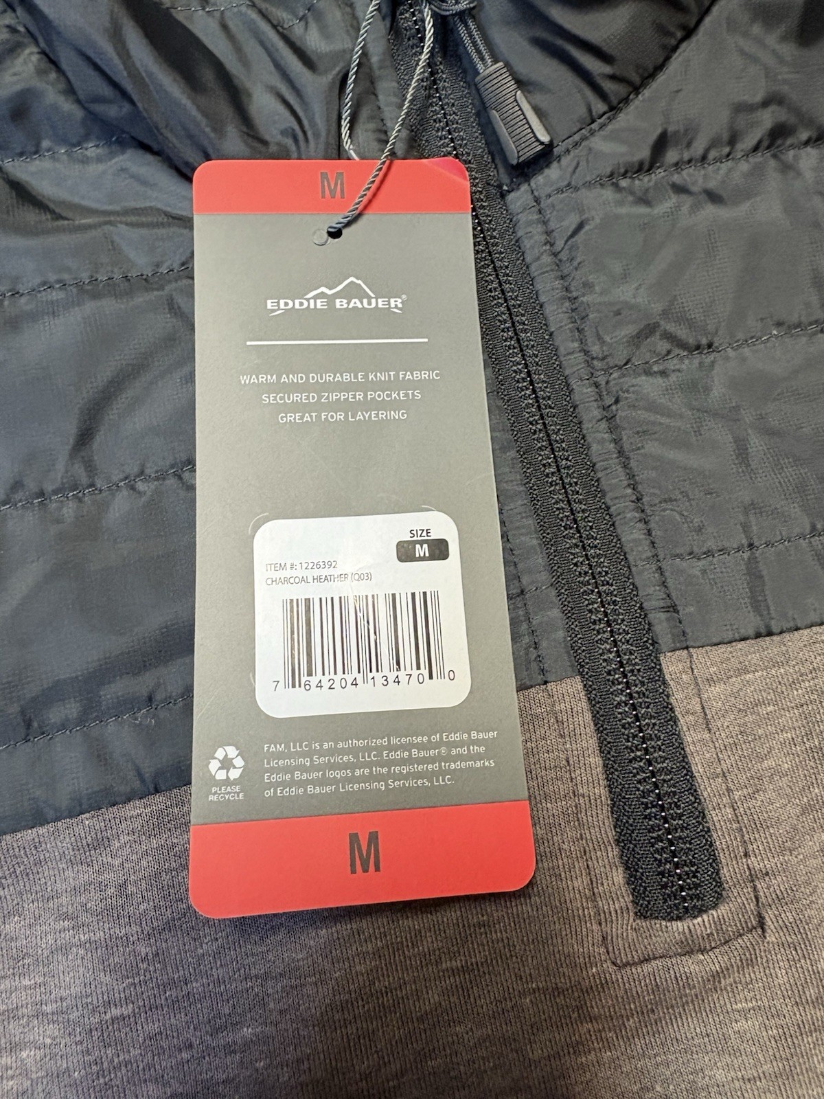 как выглядит Eddie Bauer 1/4 zip pullover grey black Men size Medium light weight NWT фото