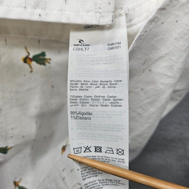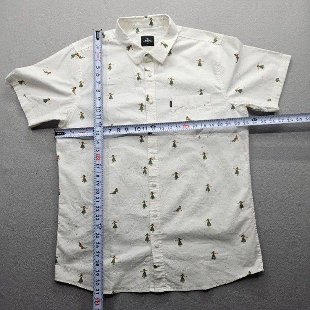 как выглядит Rip Curl Mens XL White Short Sleeve Button Down Shirt Casual Hula Girl Design фото