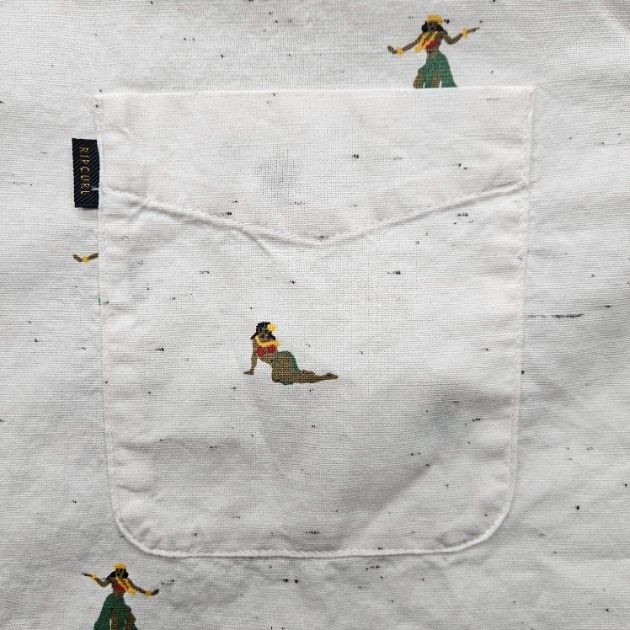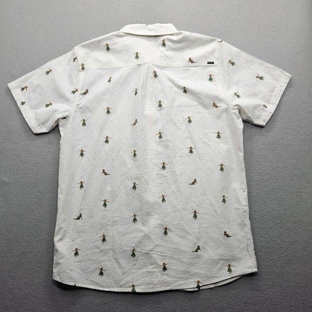 Rip Curl Men's XL White Short Sleeve Button Down Shirt Casual Hula Girl Design