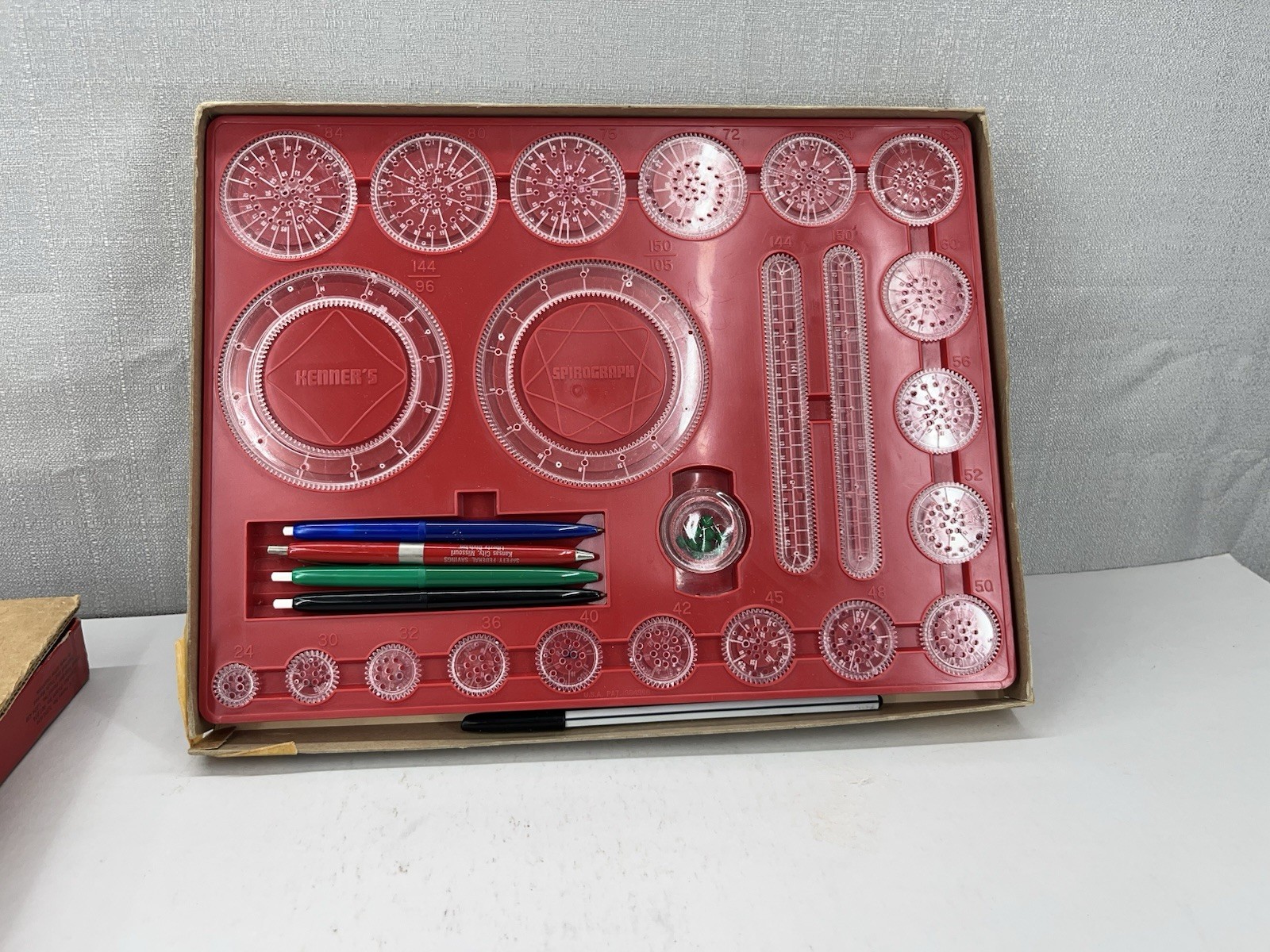 Kenner 401 1960s RED Spirograph Complete w/Pens All Pieces Original w/Box