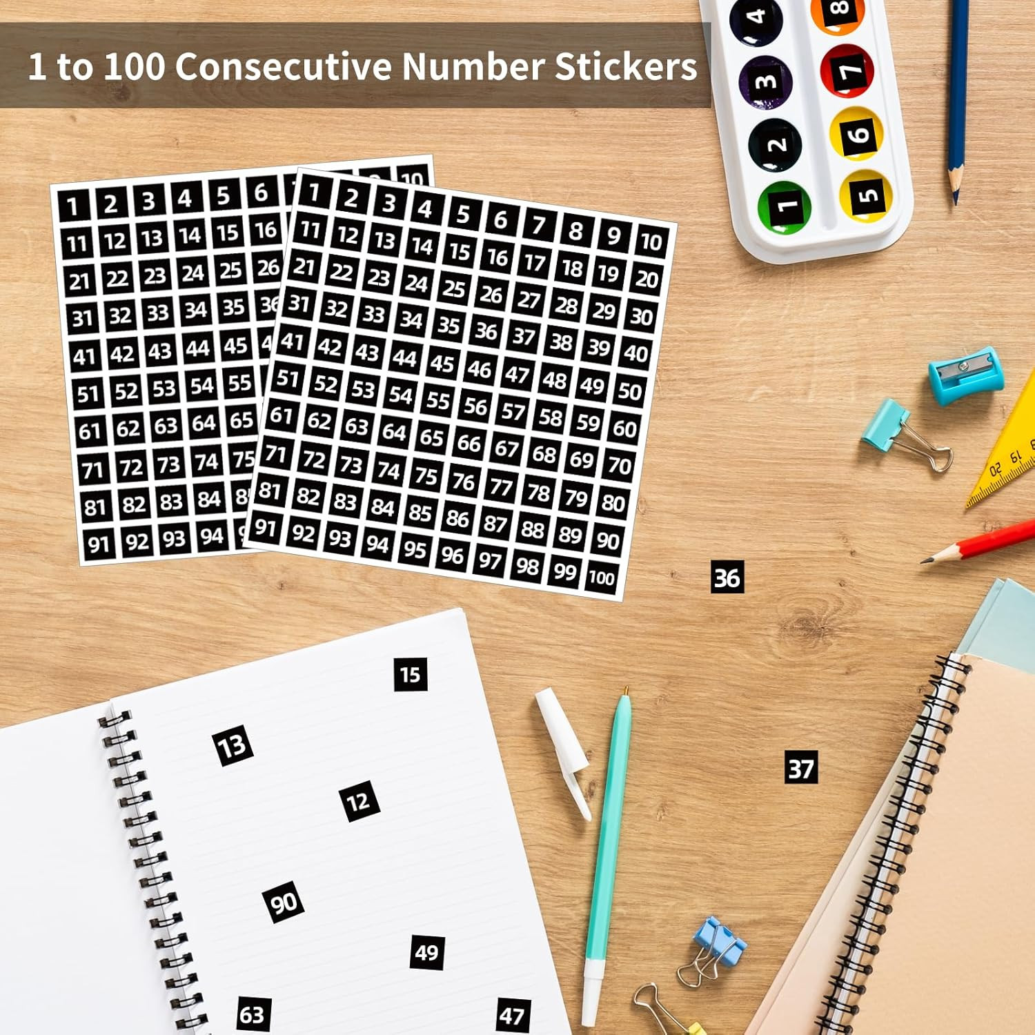 как выглядит 1 to 100 Consecutive Number Stickers, 0.4 Inch Square Small Number Stickers L... фото