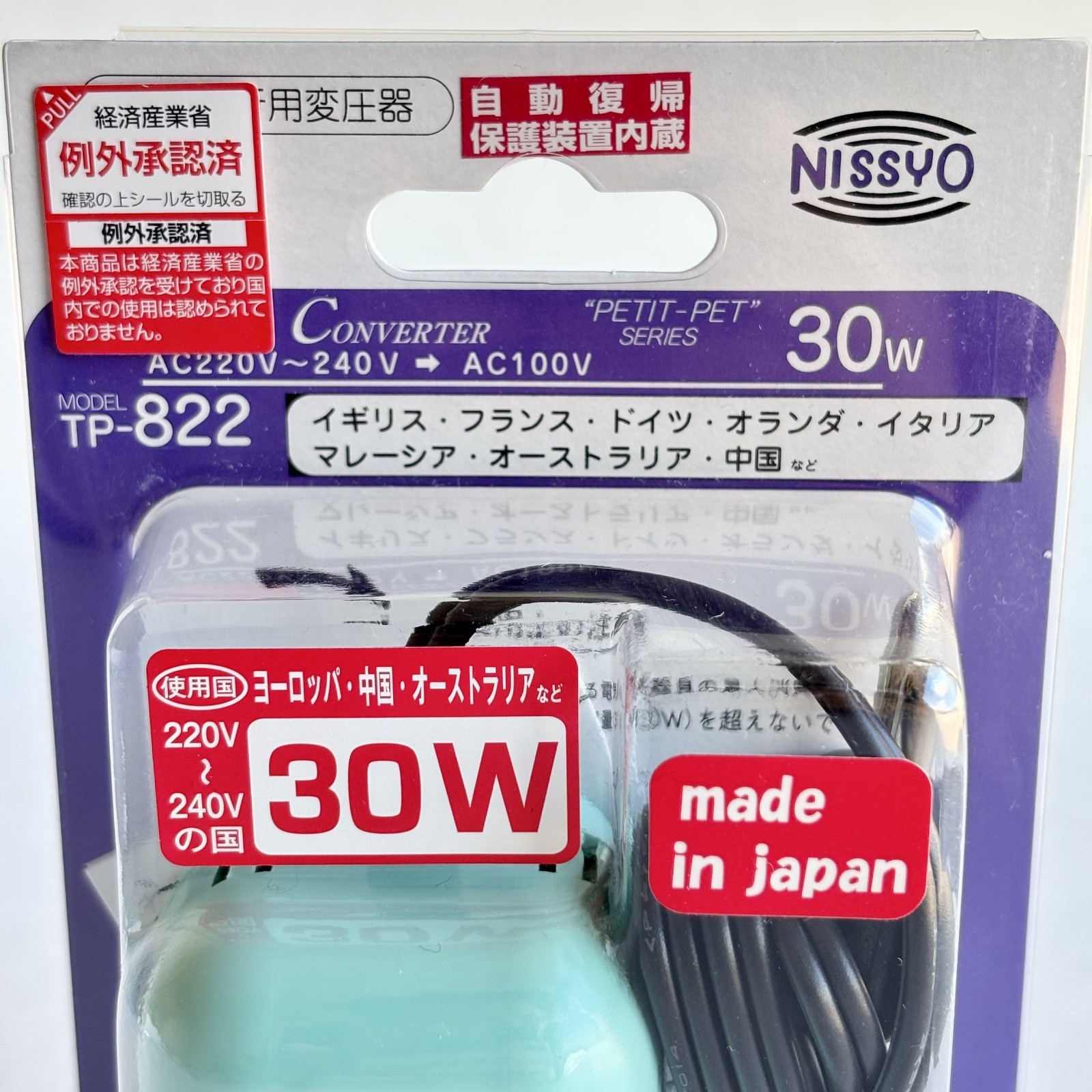 Nissyo TP-822 Down Transformer 220-240V to 100V, 30W NEW from Japan