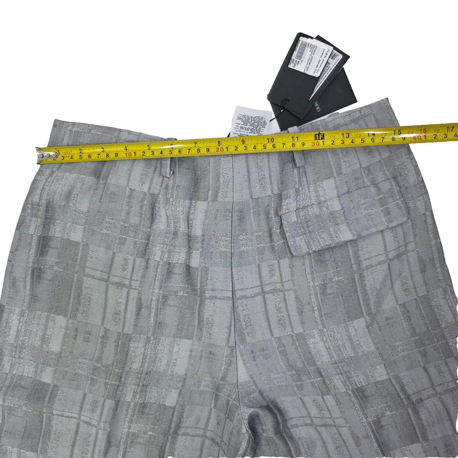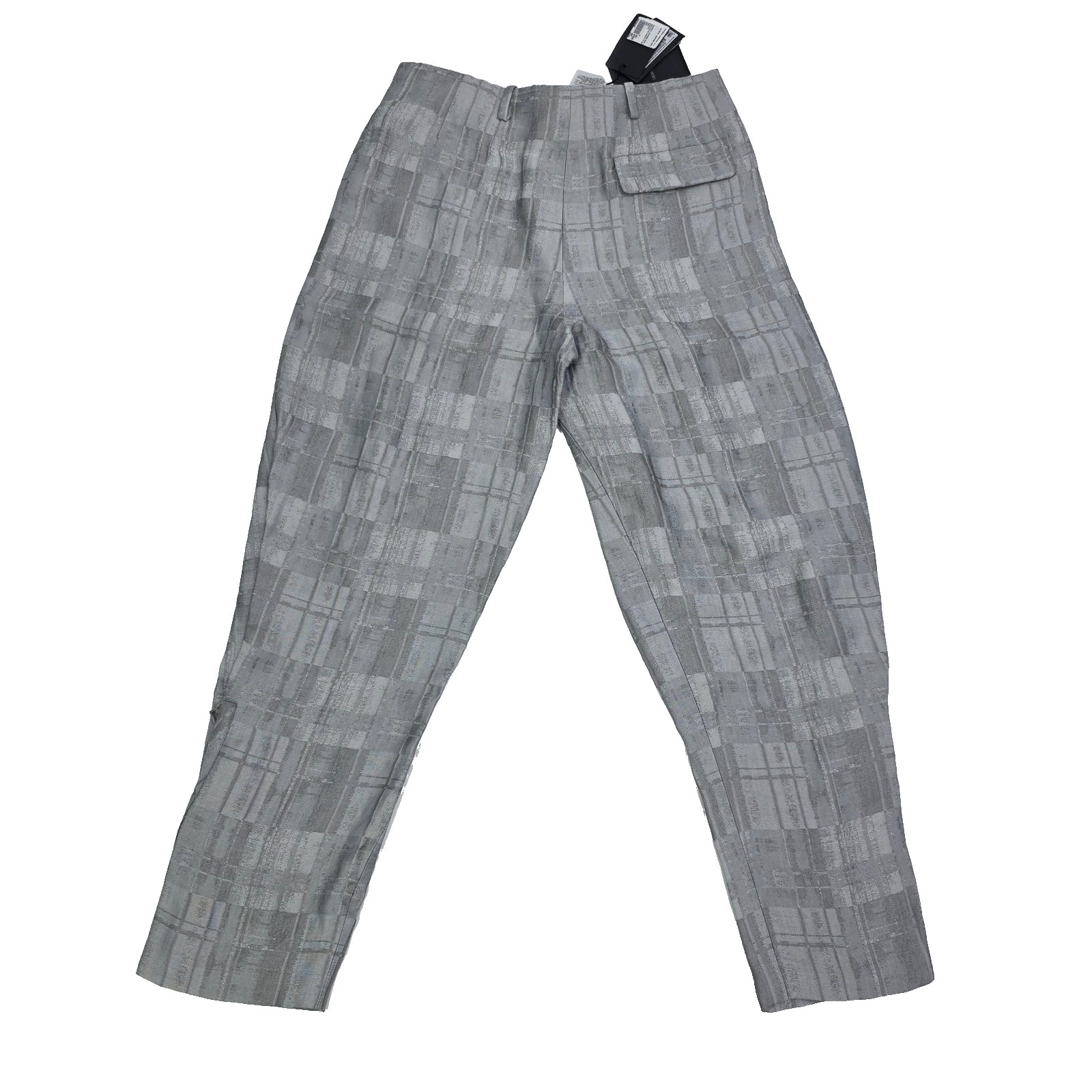 Giorgio Armani Check Motif Concealed Trousers Grey Wide Pleats Pants 42 Bnwt