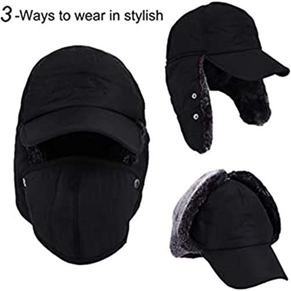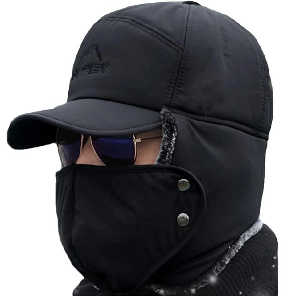 Winter 3 in 1 Thermal Fur Lined Trapper Hat with Ear Flap Full Face Warmer Cover