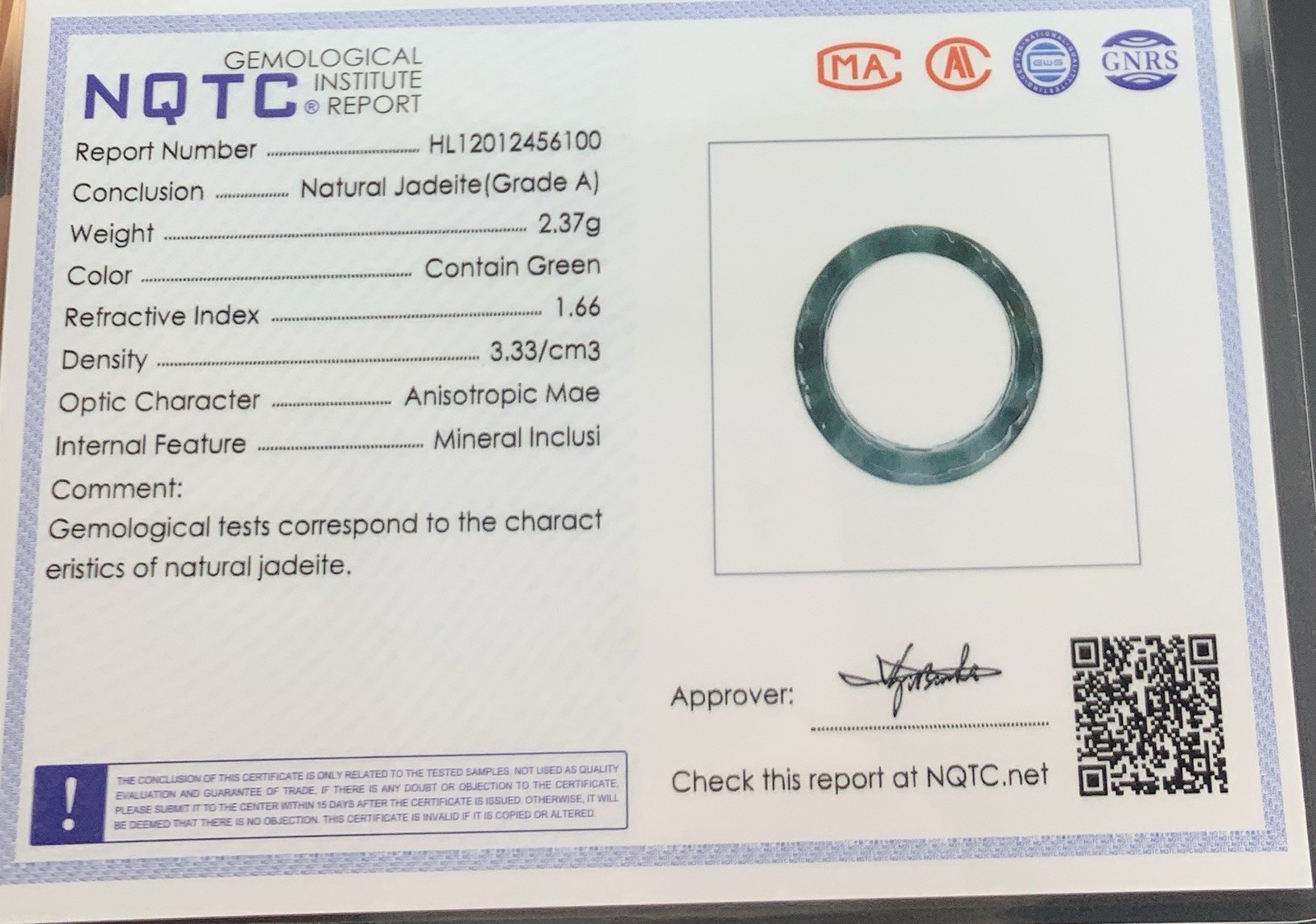 как выглядит Video Certified Green A Jadeite Jade Heart Round Circle Ring NO. 4.25 420085 фото