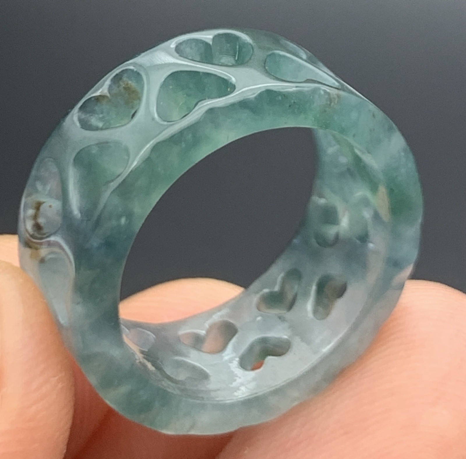 Video Certified Green A Jadeite Jade Heart Round Circle Ring NO. 4.25 420085