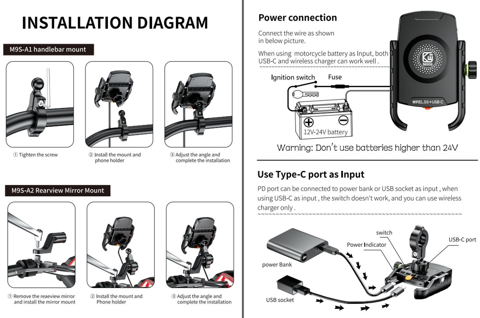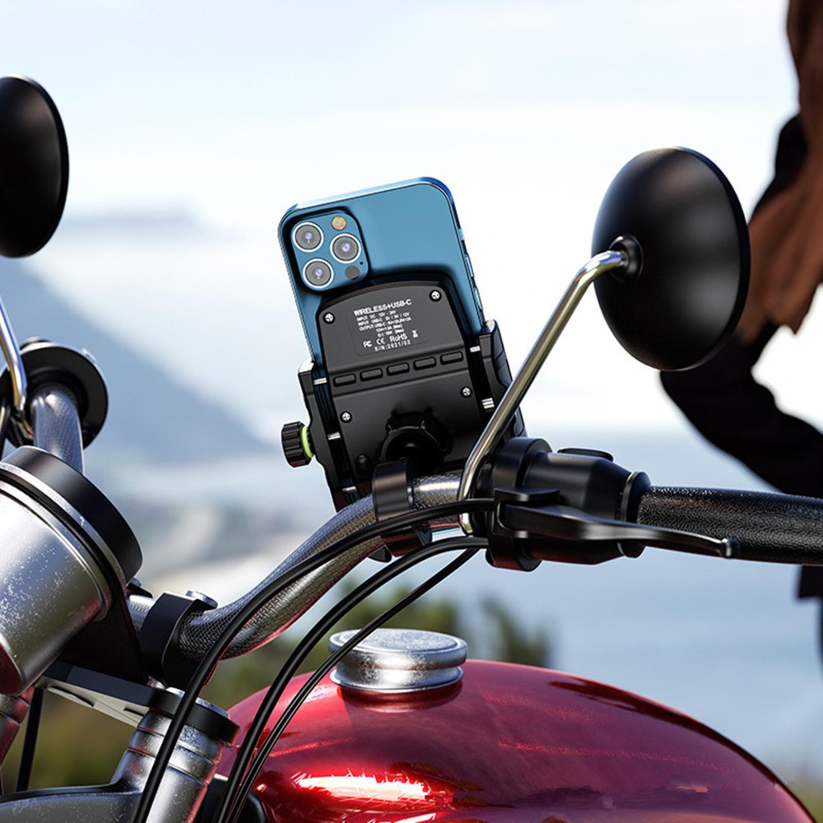 360 Rotation Wireless USB-C Fast Charger Motorcycle Holder Bracket For 4-7Phone