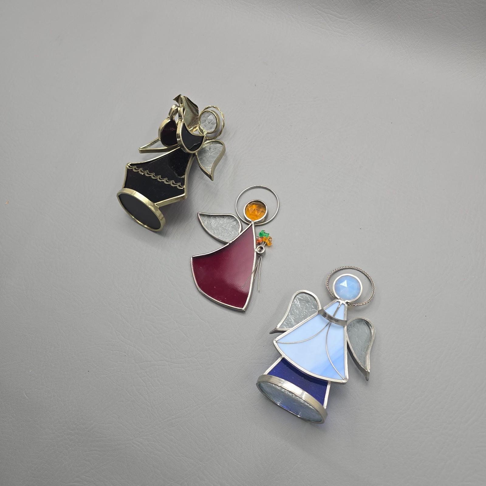 • Vintage Art Stained Glass Self Standing Angels 5 inches Tall Set of 3 Multicolor