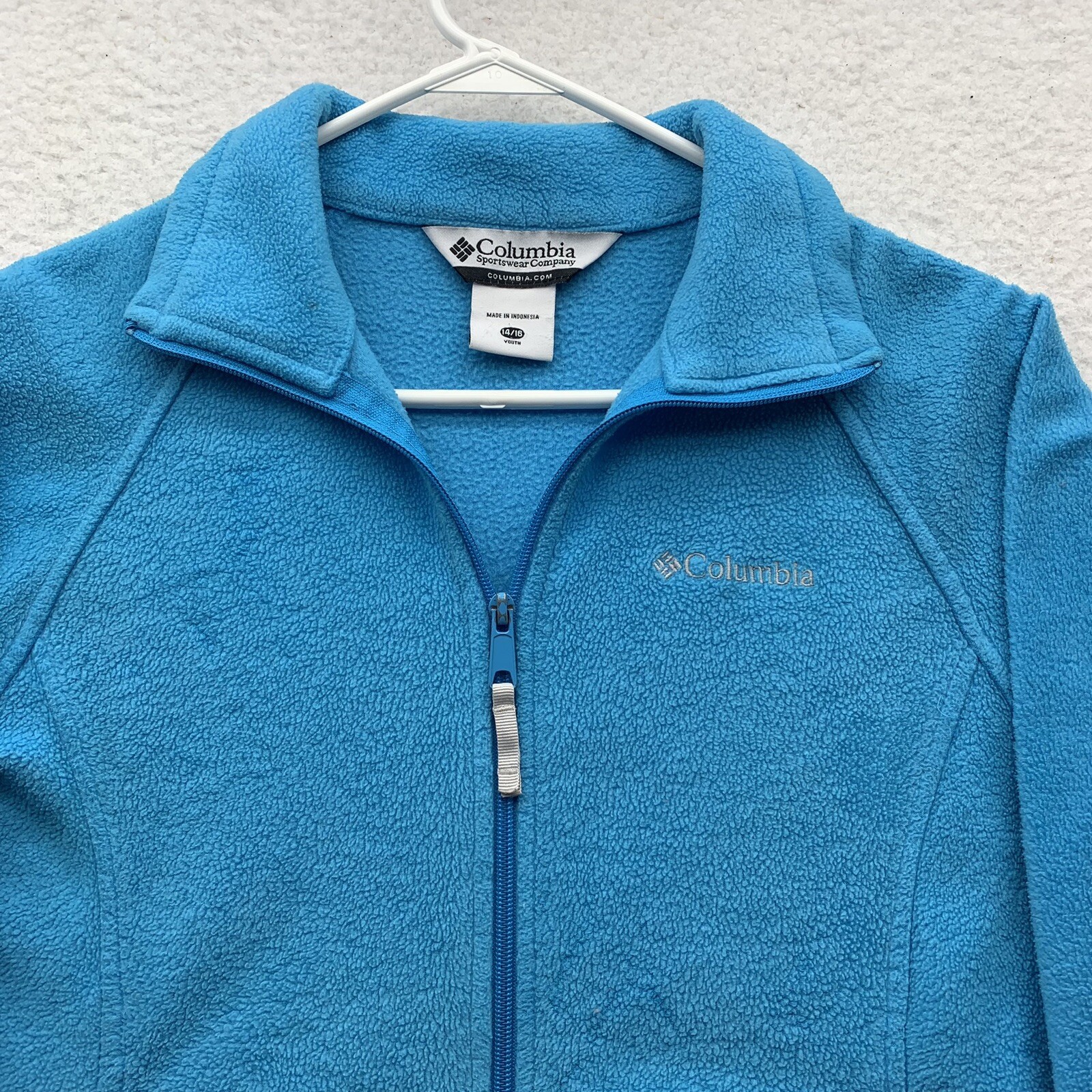 Columbia Fleece Jacket Youth Kids 14/16 Light Blue Full Zip Warm Soft Outdoors