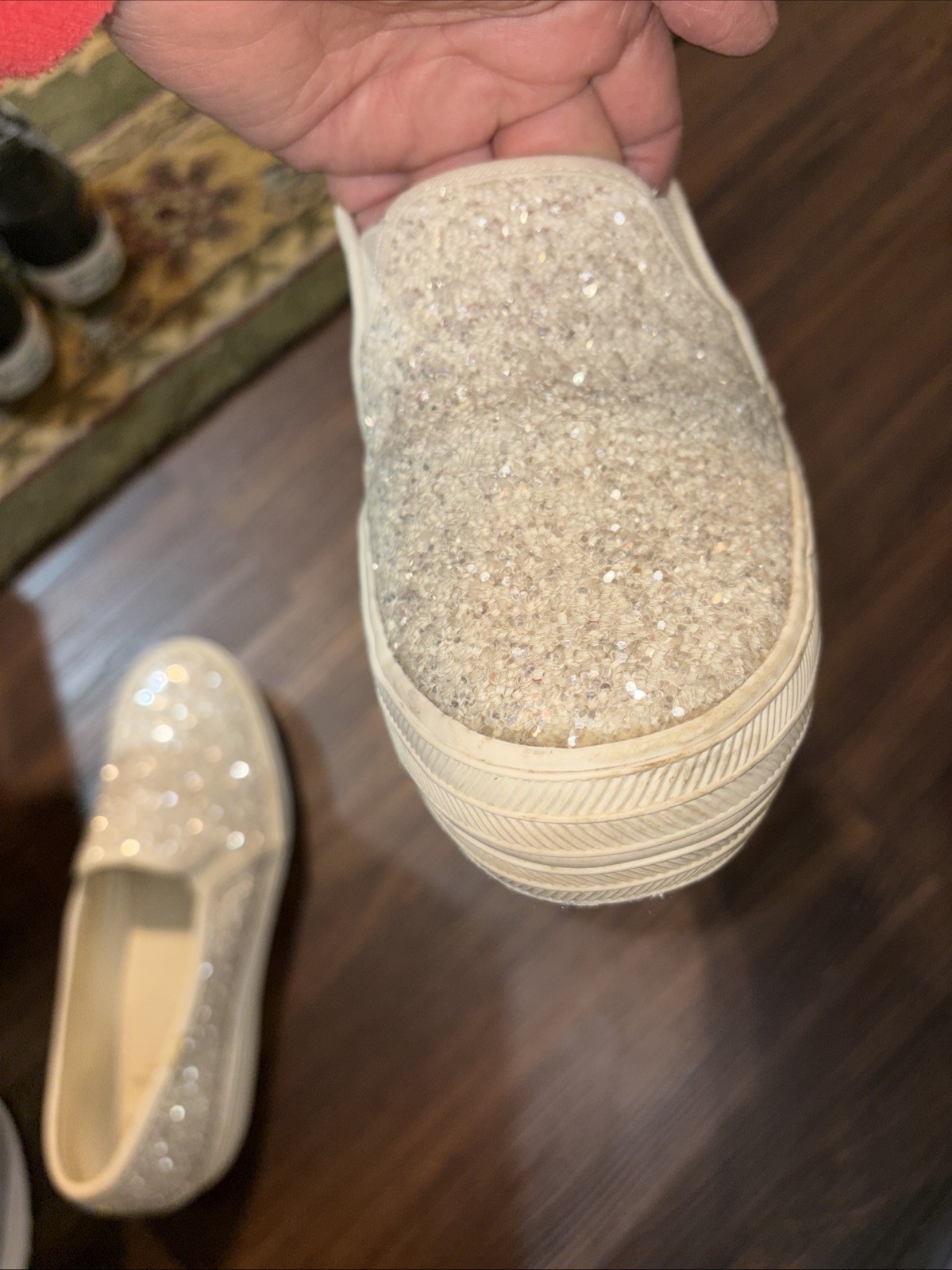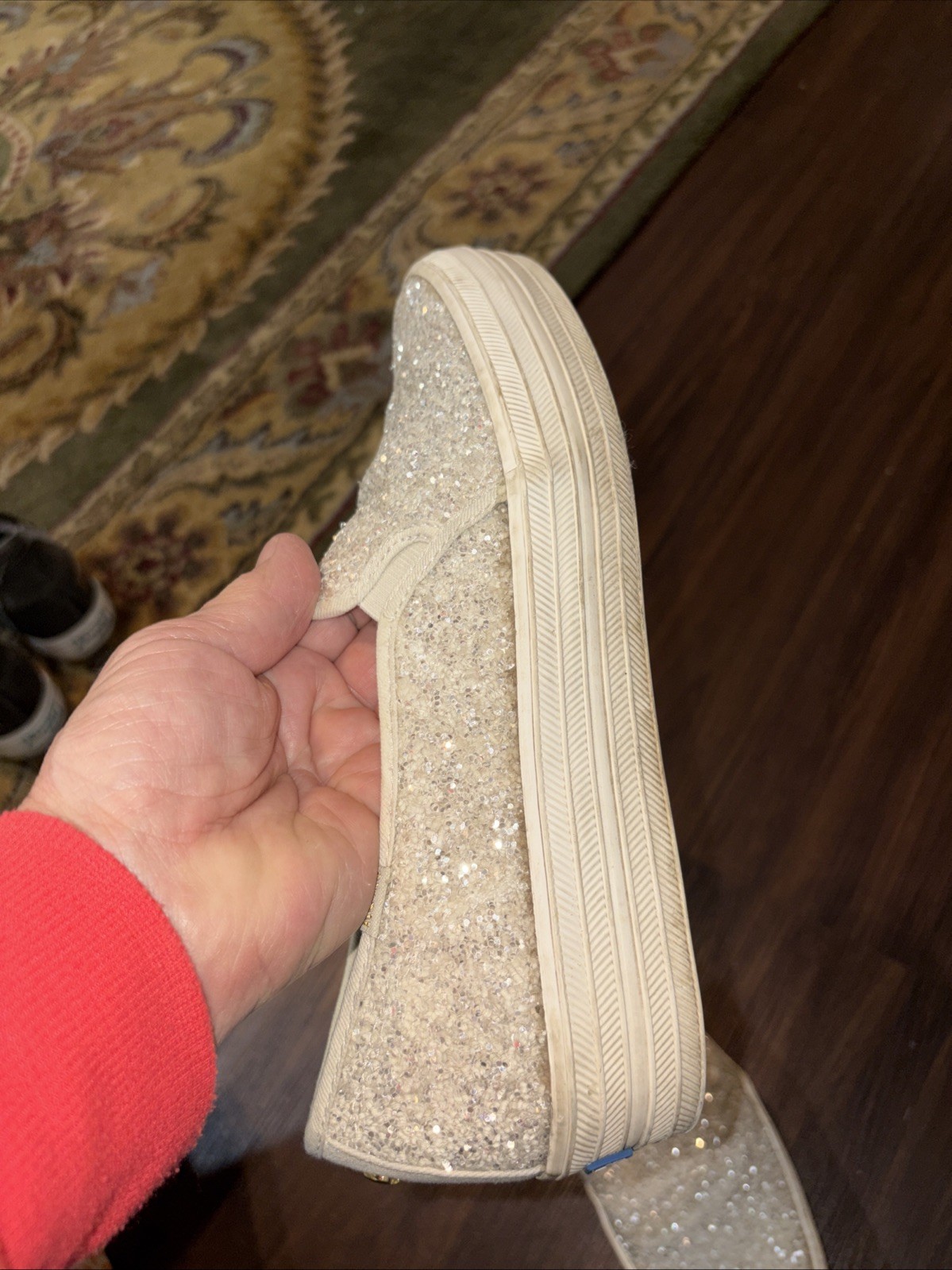 как выглядит Keds Kate Spade New York White Glitter Slip On Size 9 фото