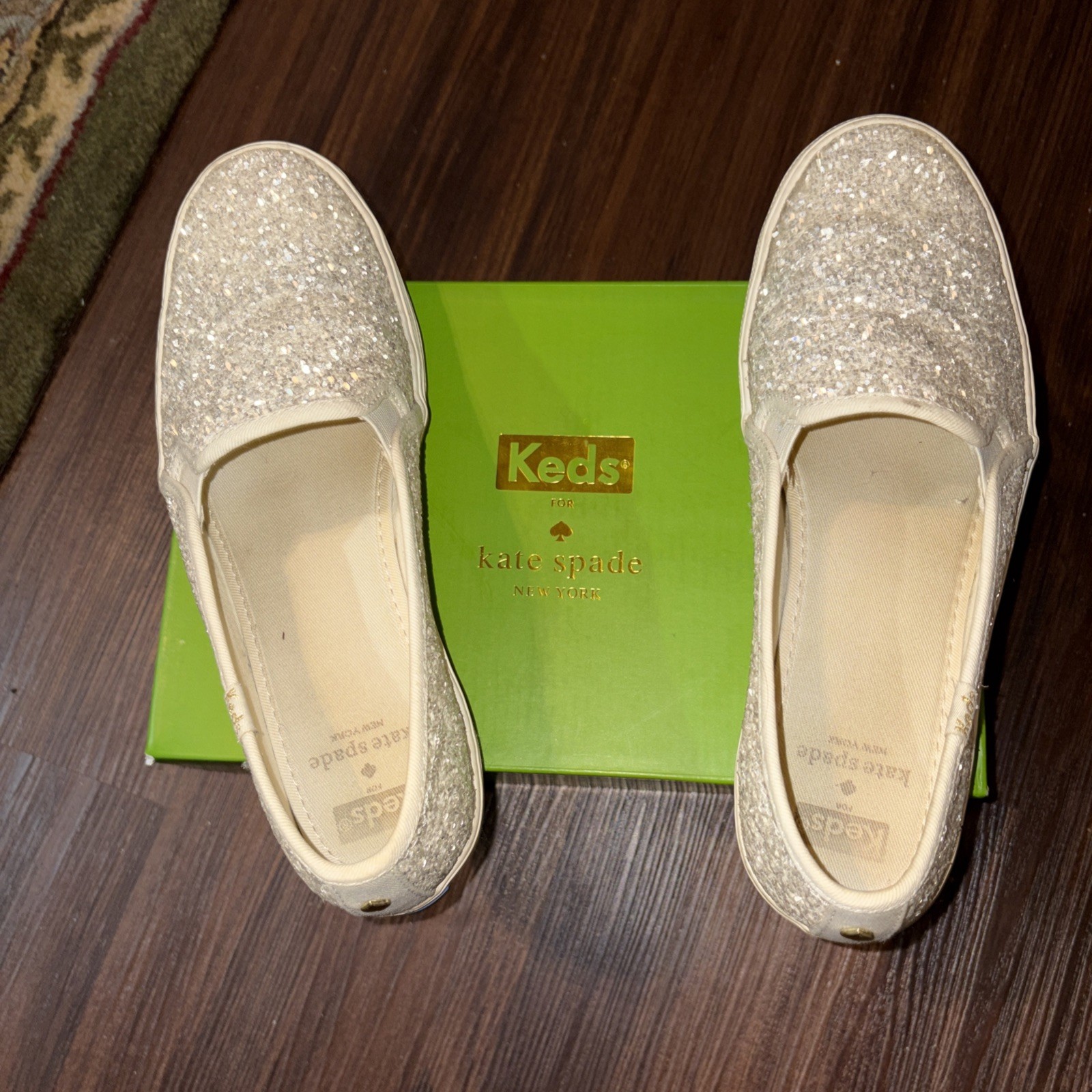 Keds Kate Spade New York White Glitter Slip On Size 9