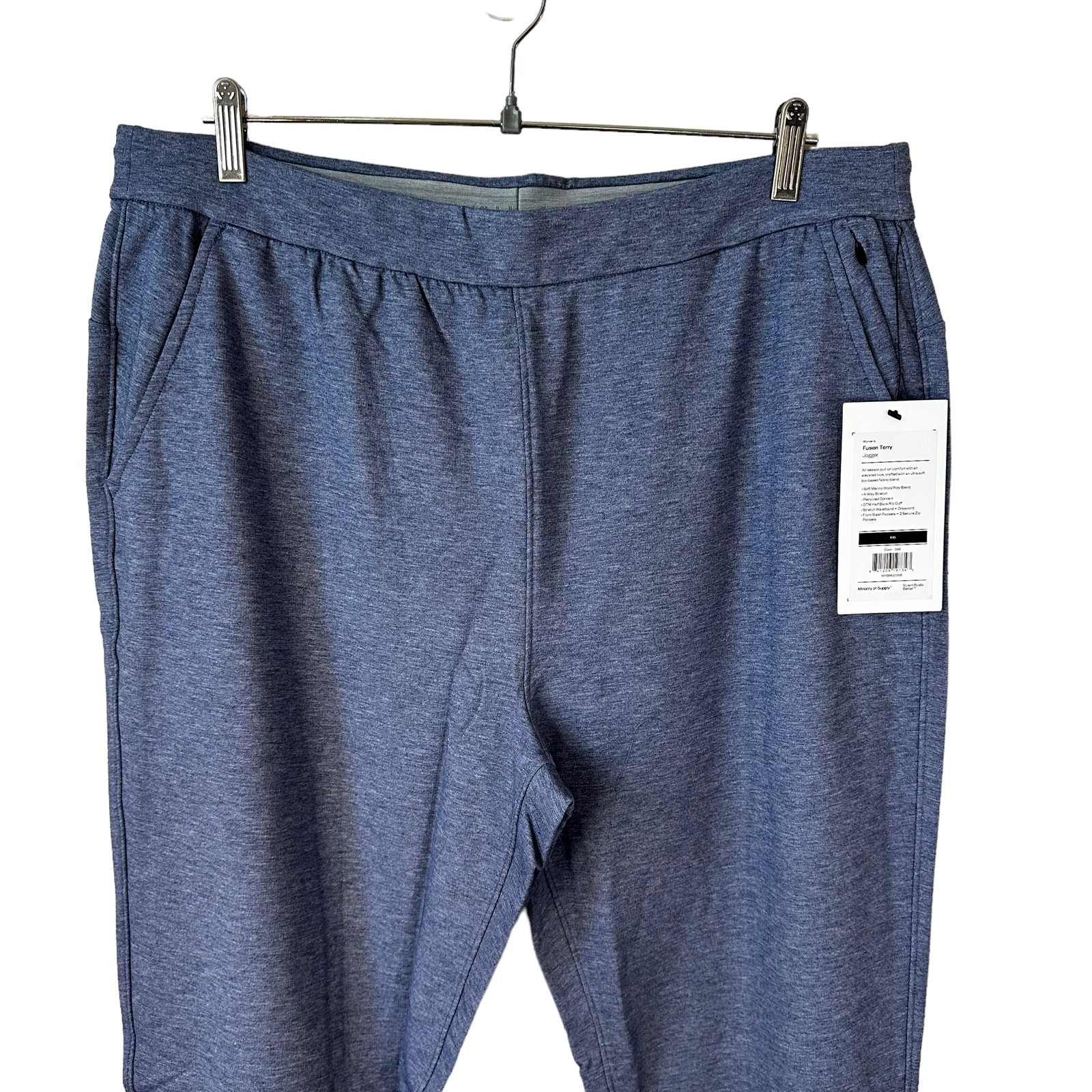 как выглядит Ministry of Supply Womens Fusion Terry Jogger Pants Indigo Heather Size XXL New фото