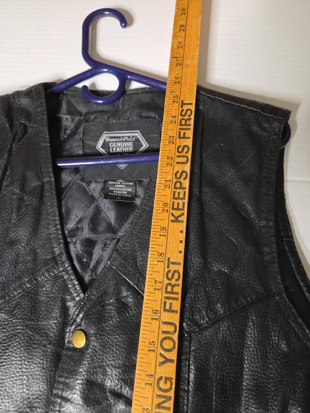 как выглядит Biker Motorcycle Vest Genuine Leather Pebbled Diamond PlateLace Up Side Mens Lg фото