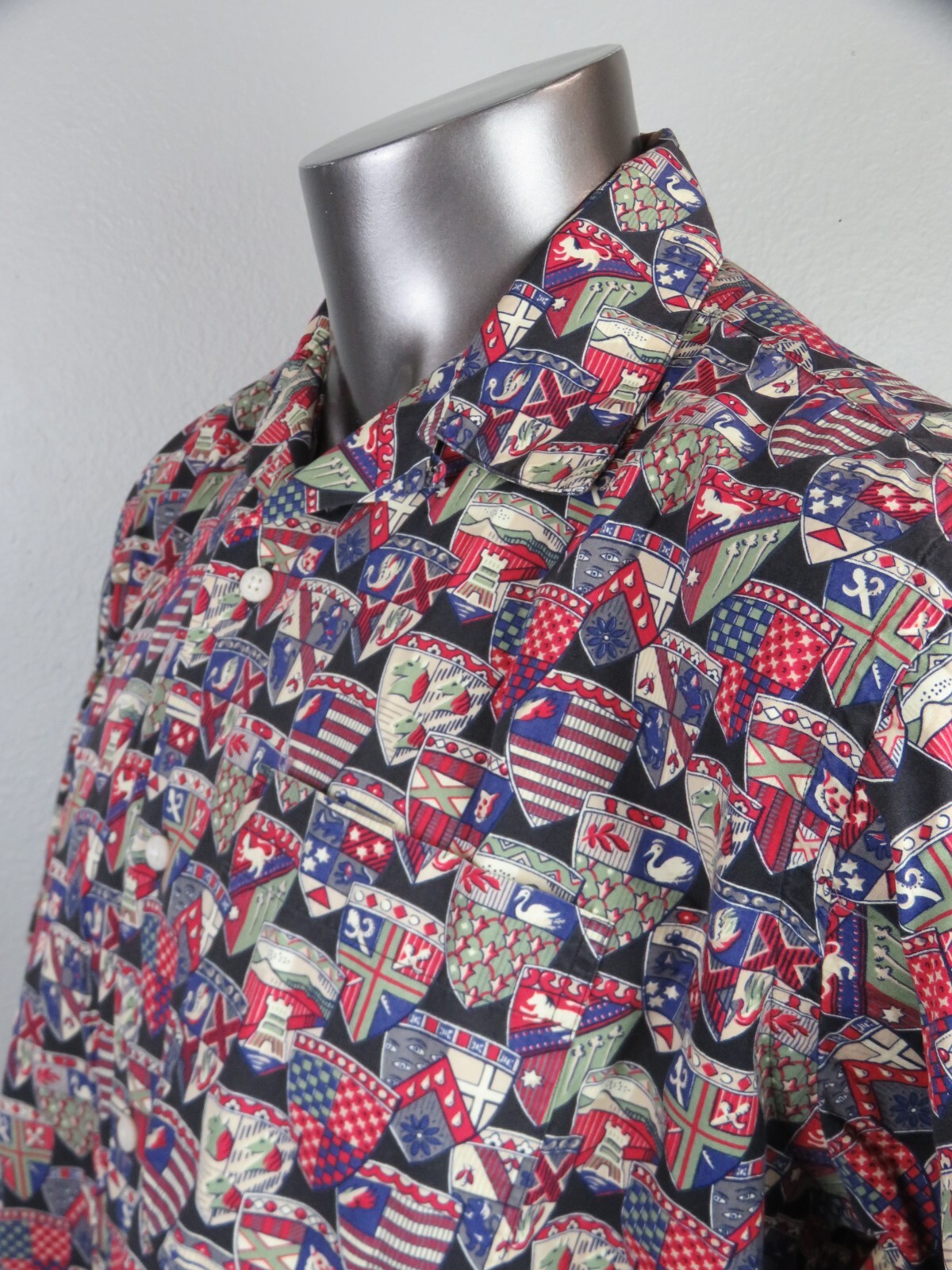 как выглядит Mens Vintage Saks Fifth Avenue Shield All Over Print Crest Button Front Shirt L фото