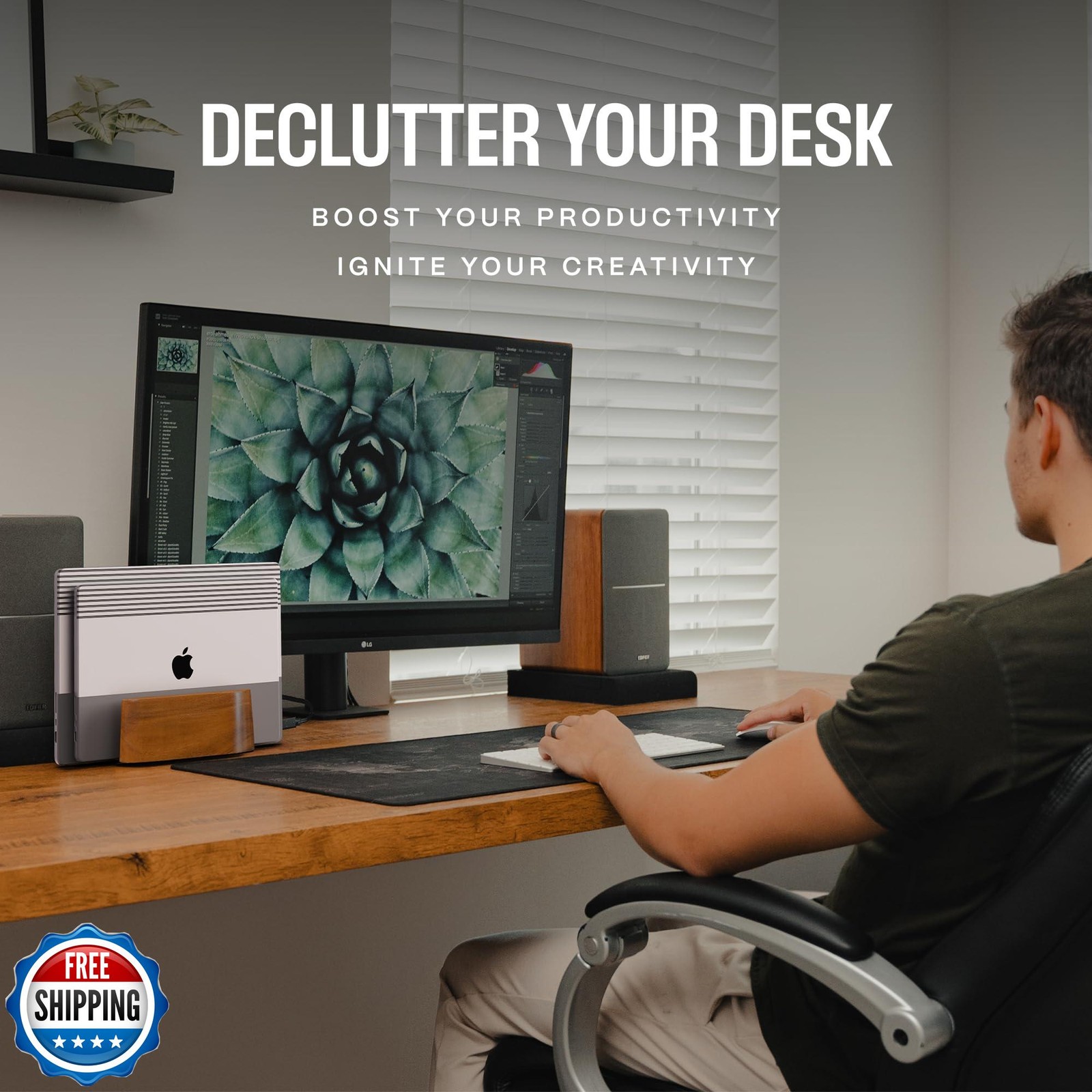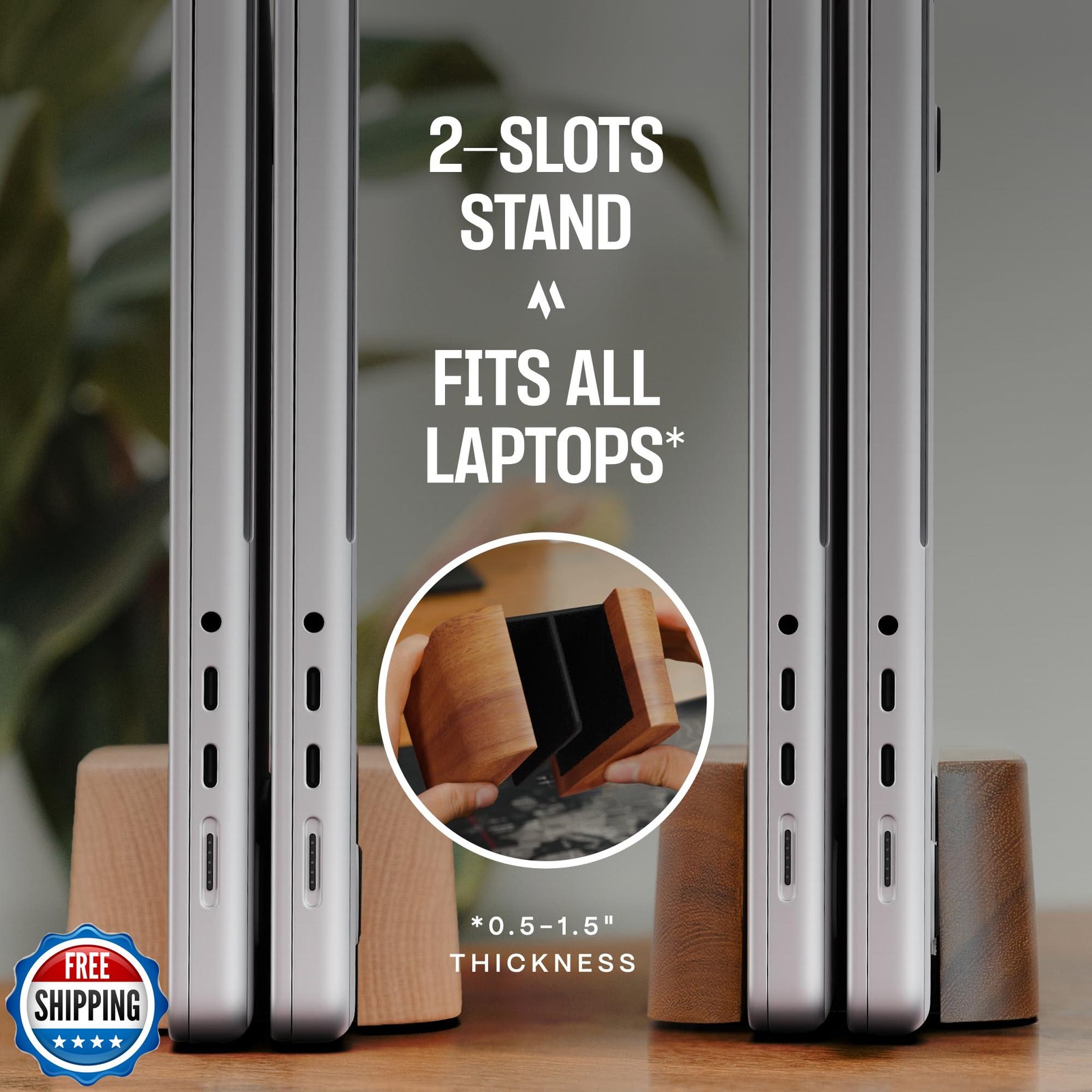 COREMINDED Adjustable Dual Vertical Laptop Stand for Desk, Wooden
