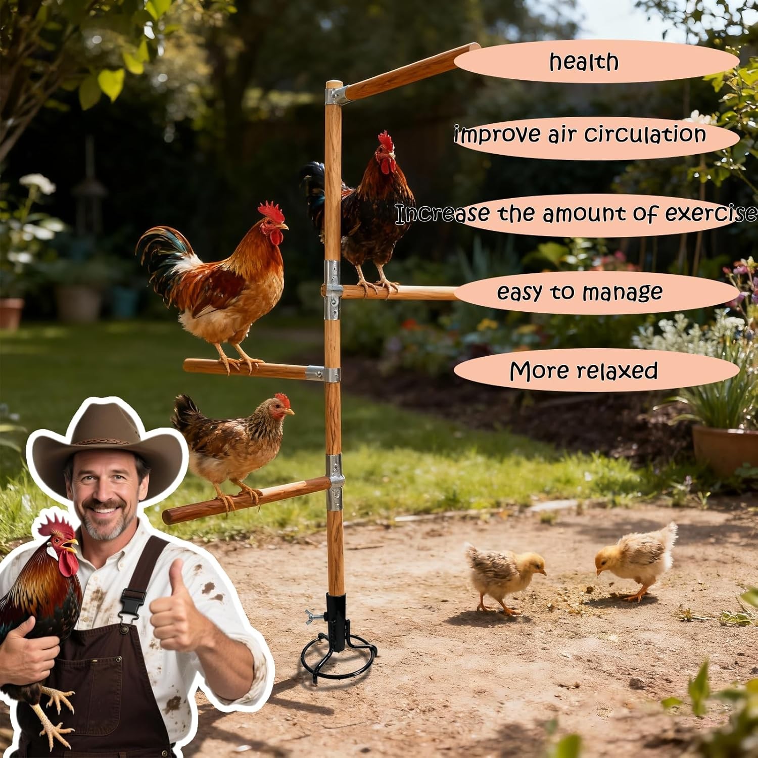 Wood Bars 3 More Stable Ground Claw Spikes Roost Chicken Perch Toy for Coop
