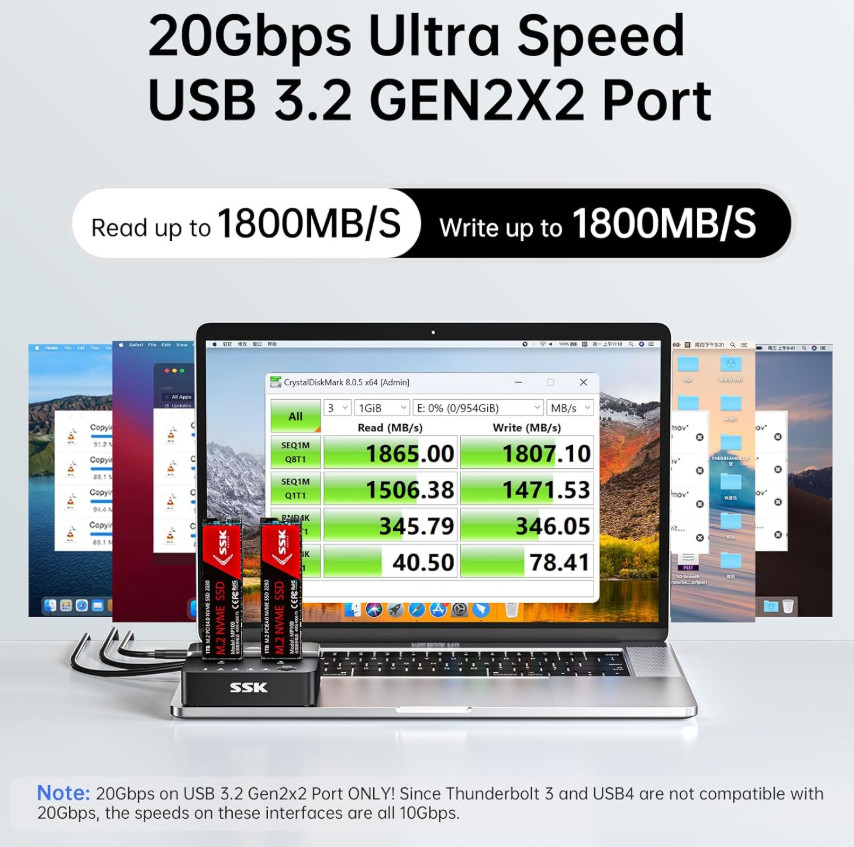 SSK NVMe SSD Cloner, M.2 Duplicator Dual BayTool-Free 20Gbps USB3.2 Gen 2X2 SSD