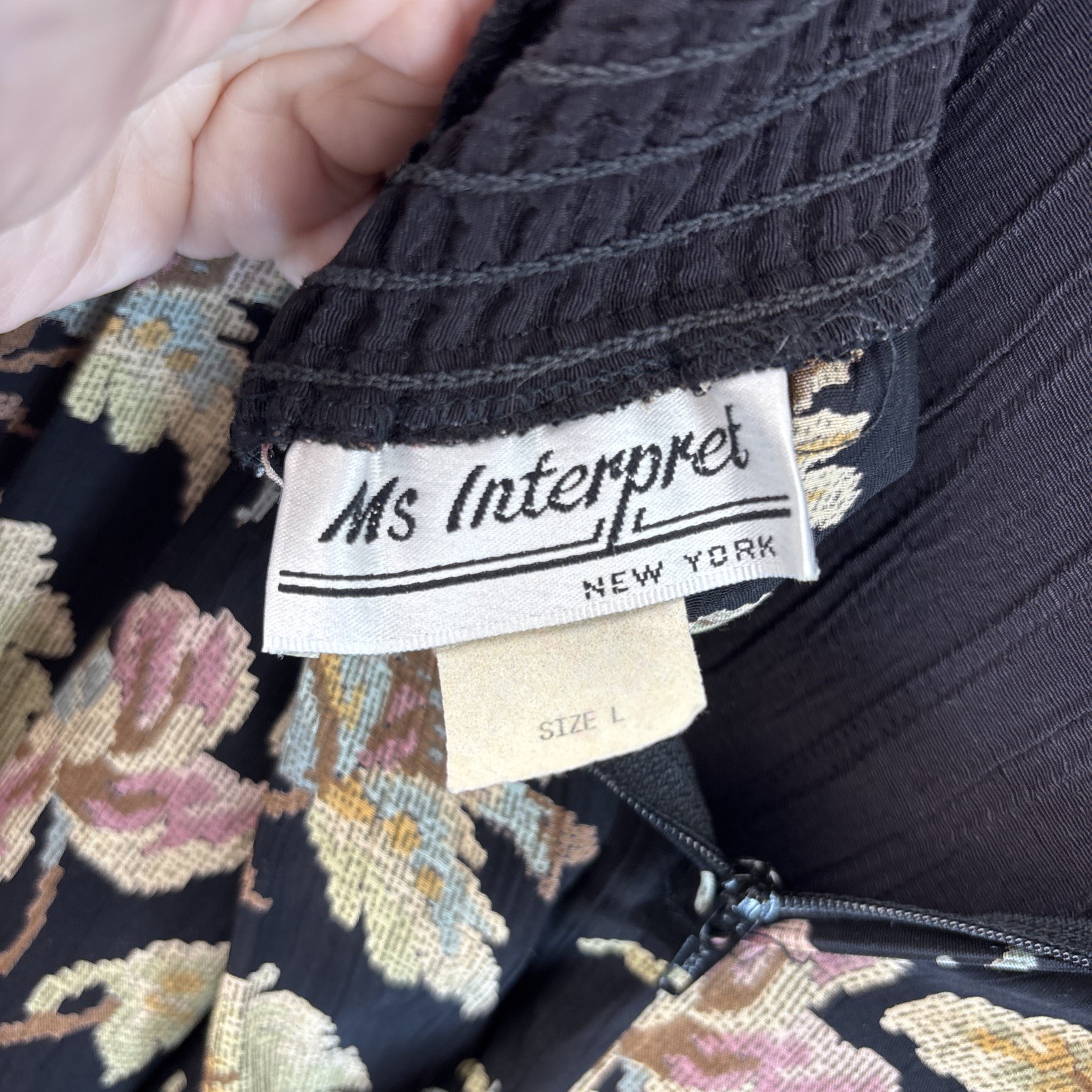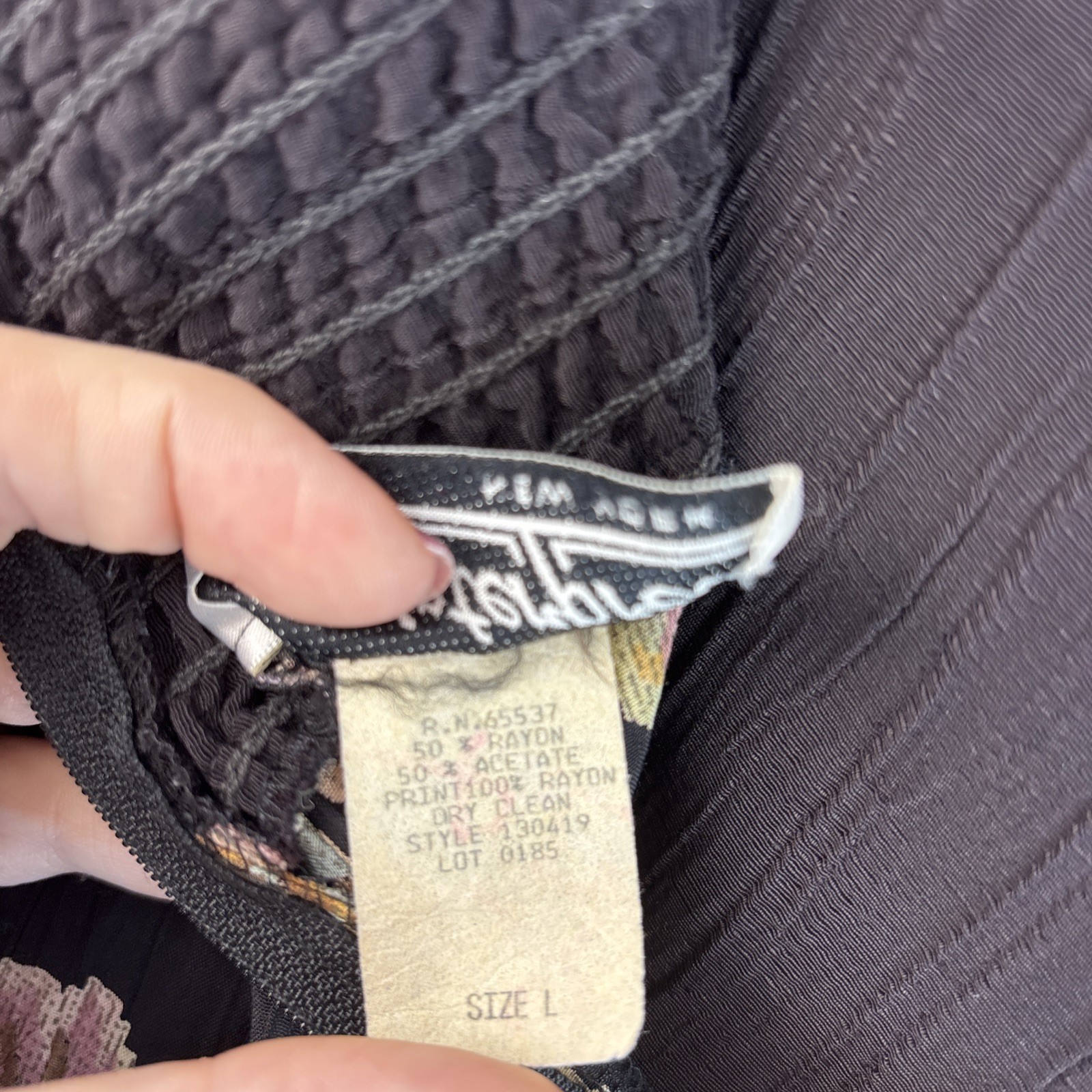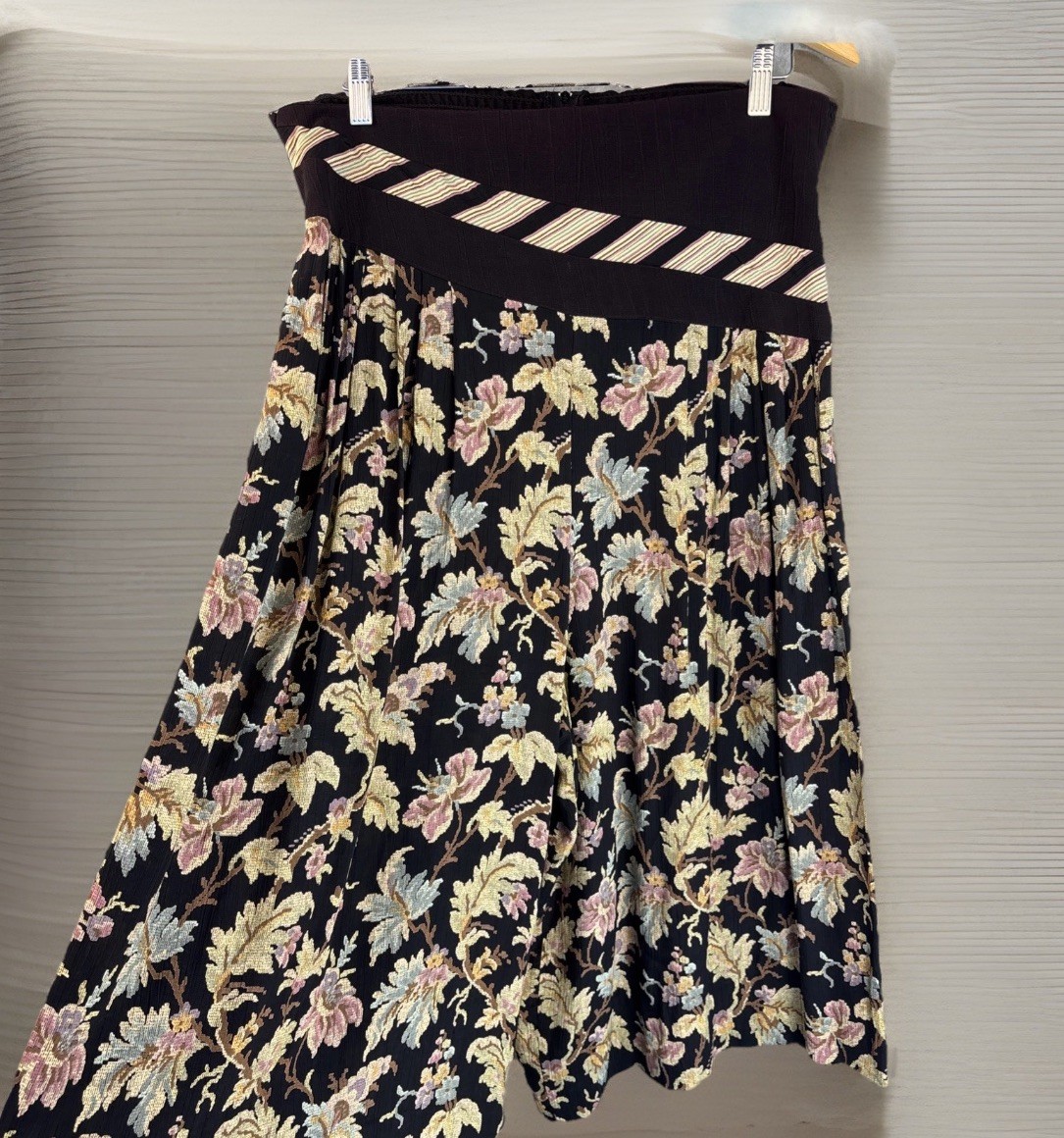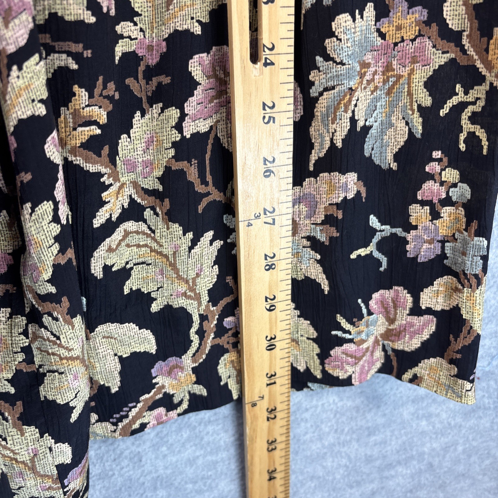 как выглядит Vintage 80s 90s Culottes Black Floral L Ultra Wide Leg Pants Crop Flowy Elastic фото