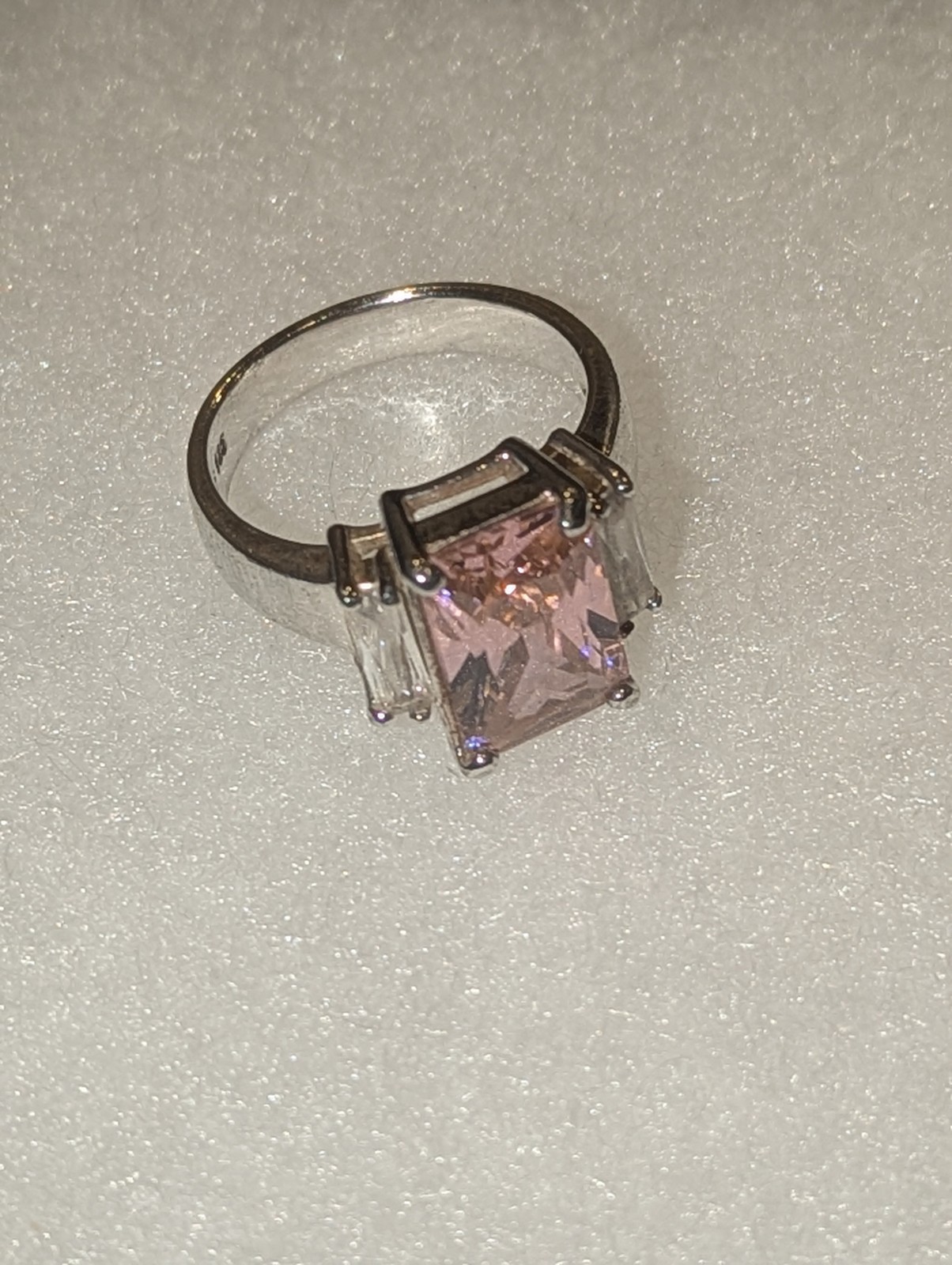как выглядит 925 Sterling Silver Size 6.75 High Polish Vintage Pink Quartz White Cz Band Ring фото