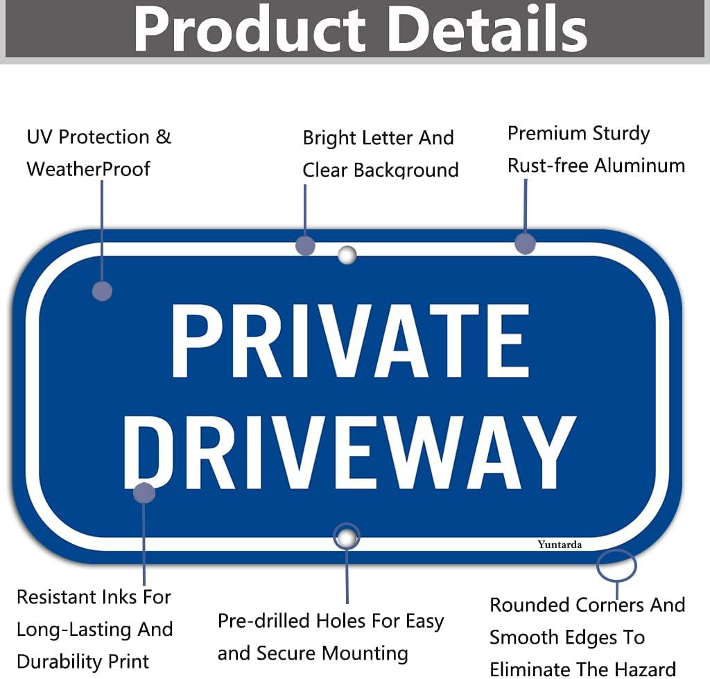 2-Pack Private Driveway, 12X6 Heavy 0.40 Aluminum Rust Free Sign Professional