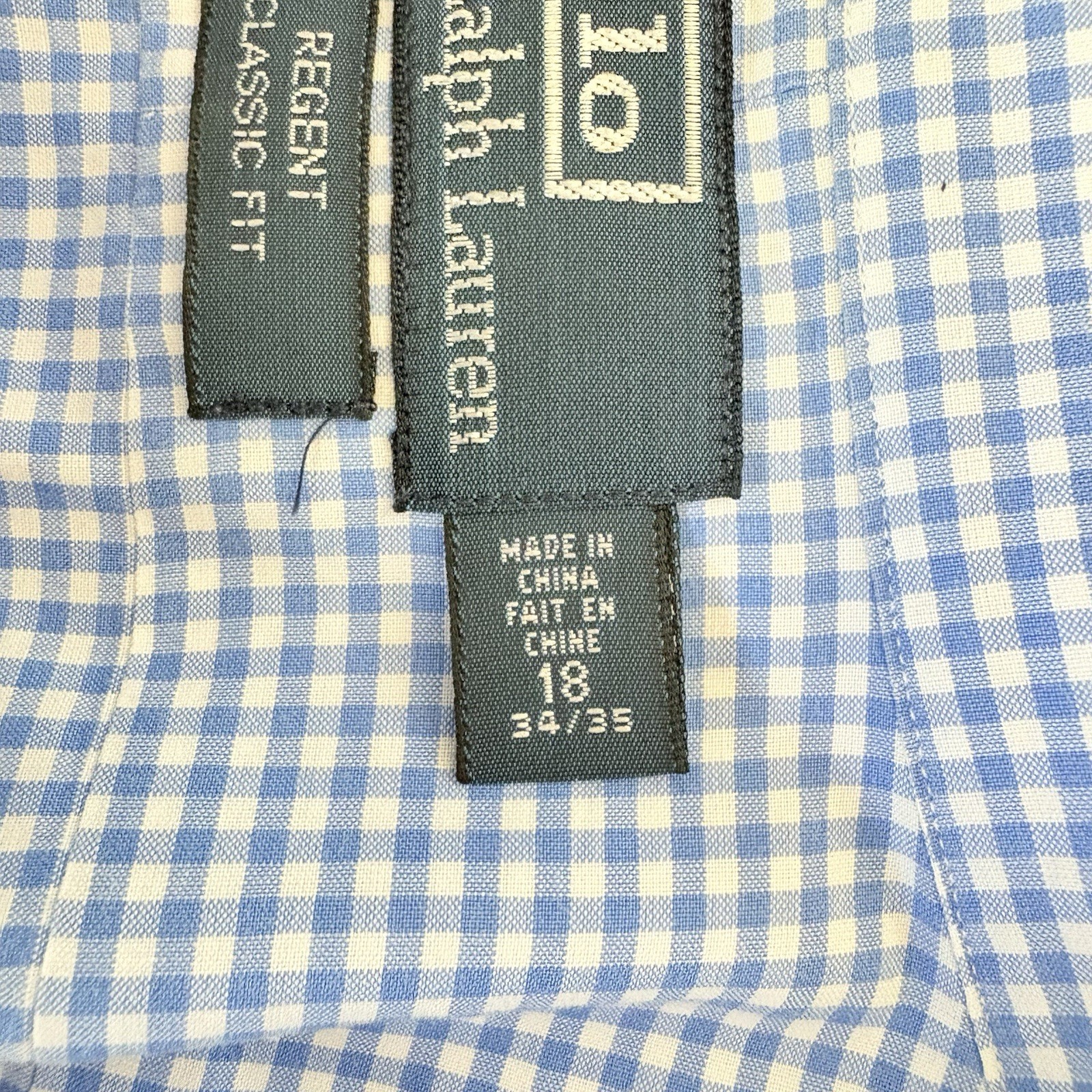 как выглядит Polo Ralph Lauren Men s Button Up Dress Shirt Blue Plaid Classic Fit Sz 18 34/35 фото