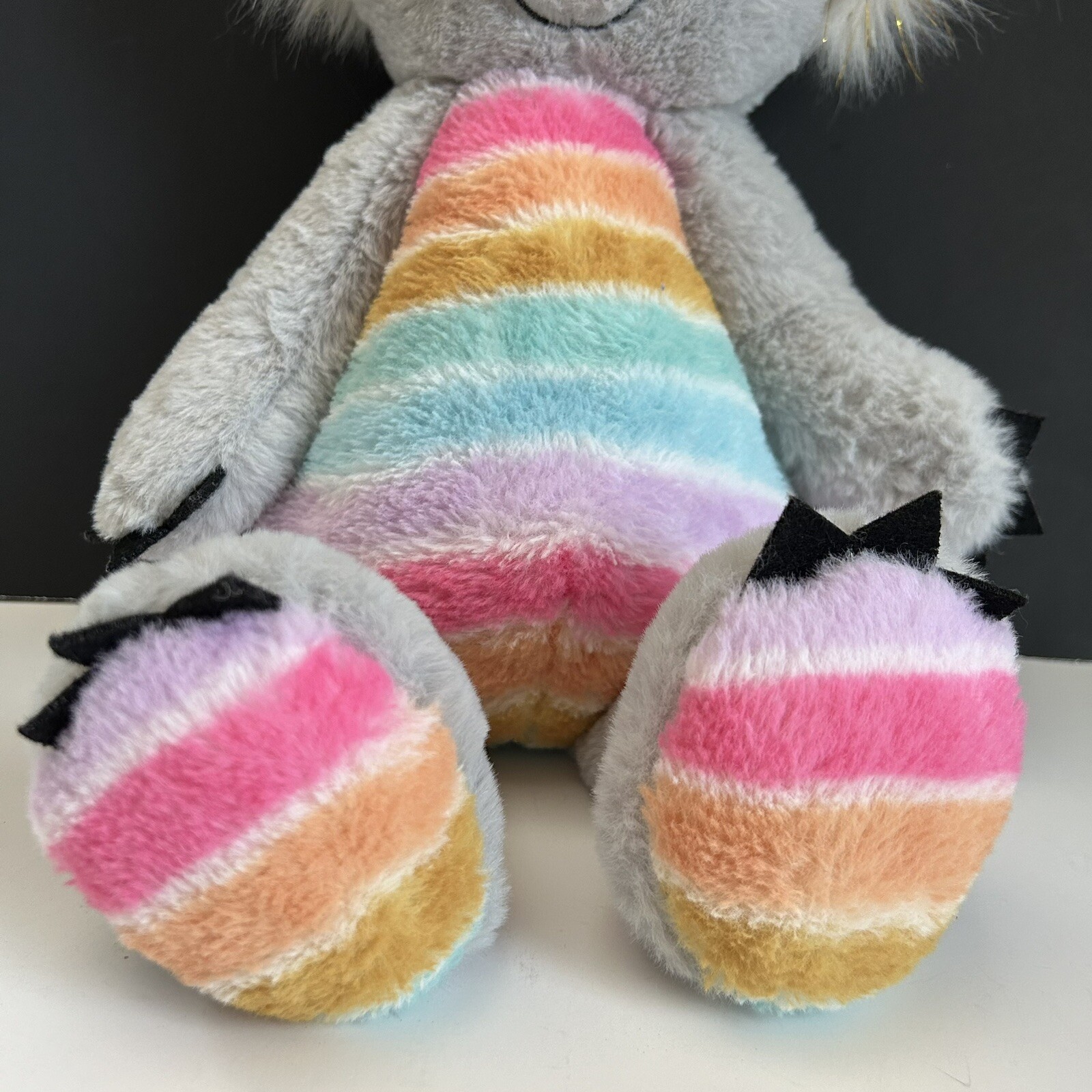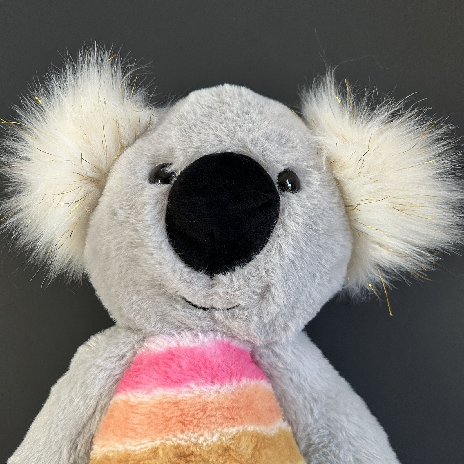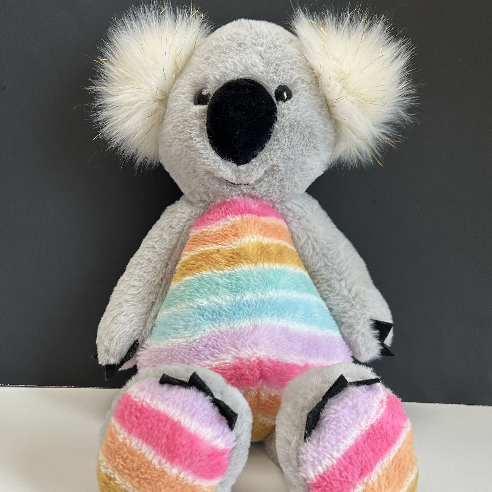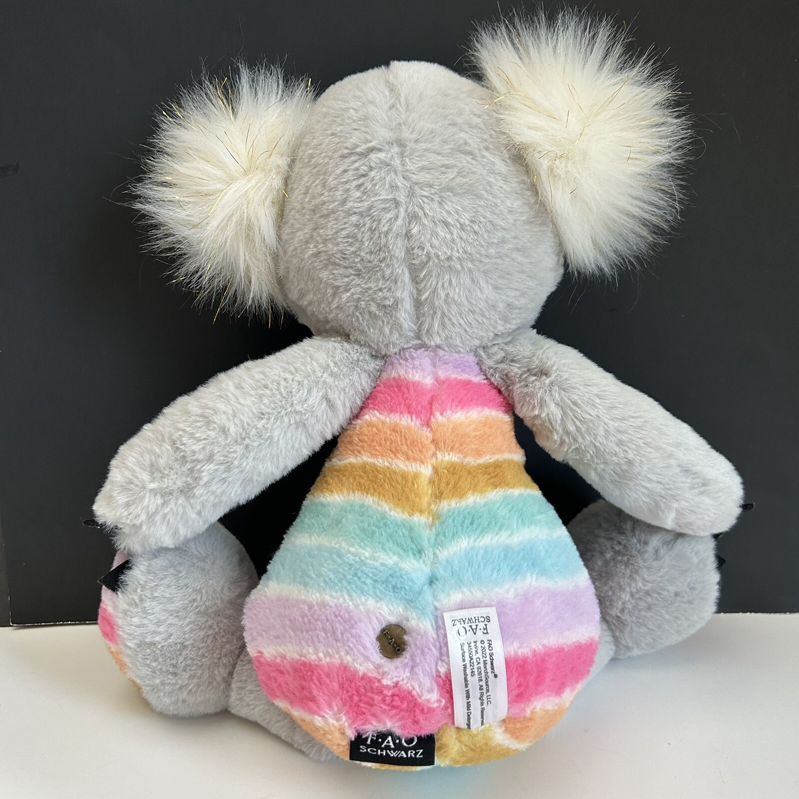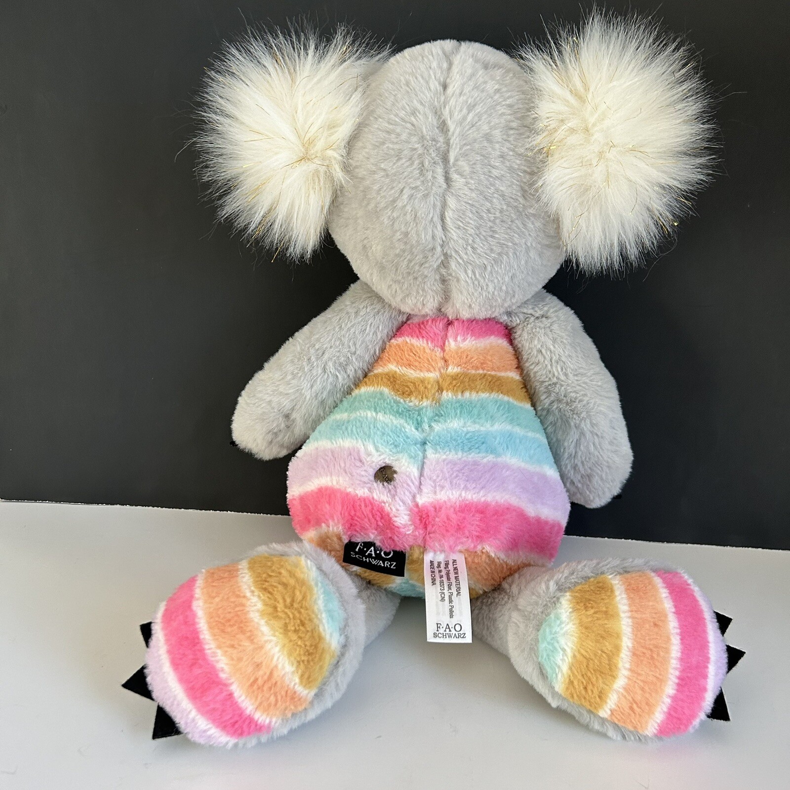 как выглядит Koala Rainbow Plush FAO Schwarz Dreamies Grey Sparkly Ears Stuffed Animal 18 in фото