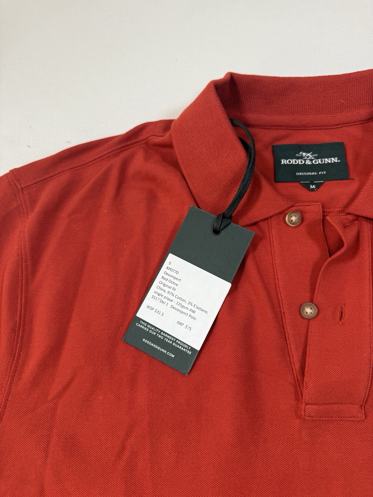 Rodd Gunn Polo Shirt Mens Medium Red Short Sleeve Pique Cotton Preppy Logo NWT