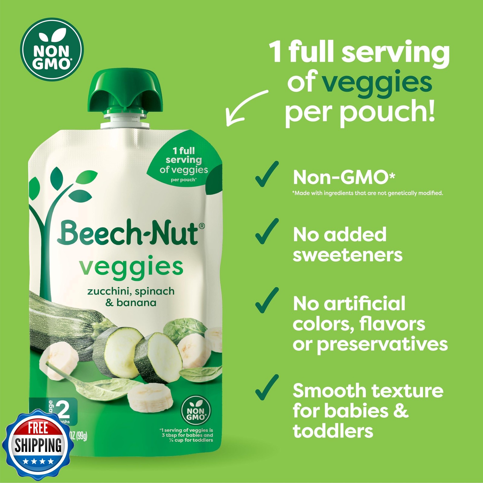 Beech-Nut Baby Food Pouches Variety Pack, Veggie Purees, 3.5 oz