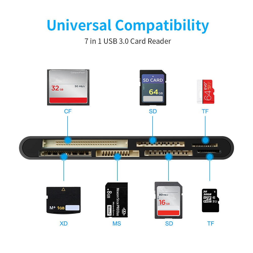 7 In 1 USB 3.0 Hub Adapter SD Micro SD CF TF MS XD Memory Card High Speed Reader