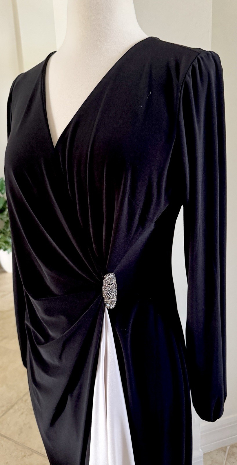 как выглядит Sz 8 Lauren Ralph Lauren Black White Santana Evening Gown Maxi Dress Gathered фото