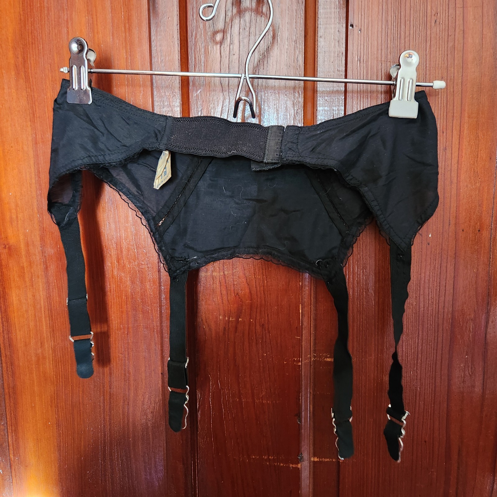 как выглядит Vintage Delightform Foundations Black Garter Belt 4 Metal Clip Floral Embroidey фото