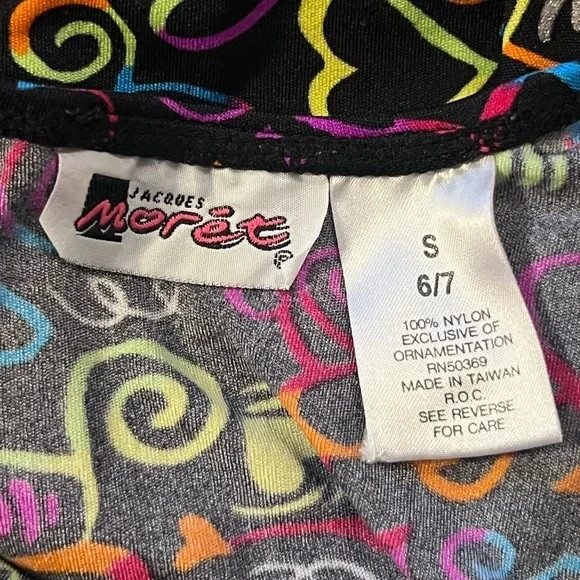 как выглядит Small 6 7 Jacques Moret Multicolor Swirl Hearts Leotard Bodysuit Dress Dance фото