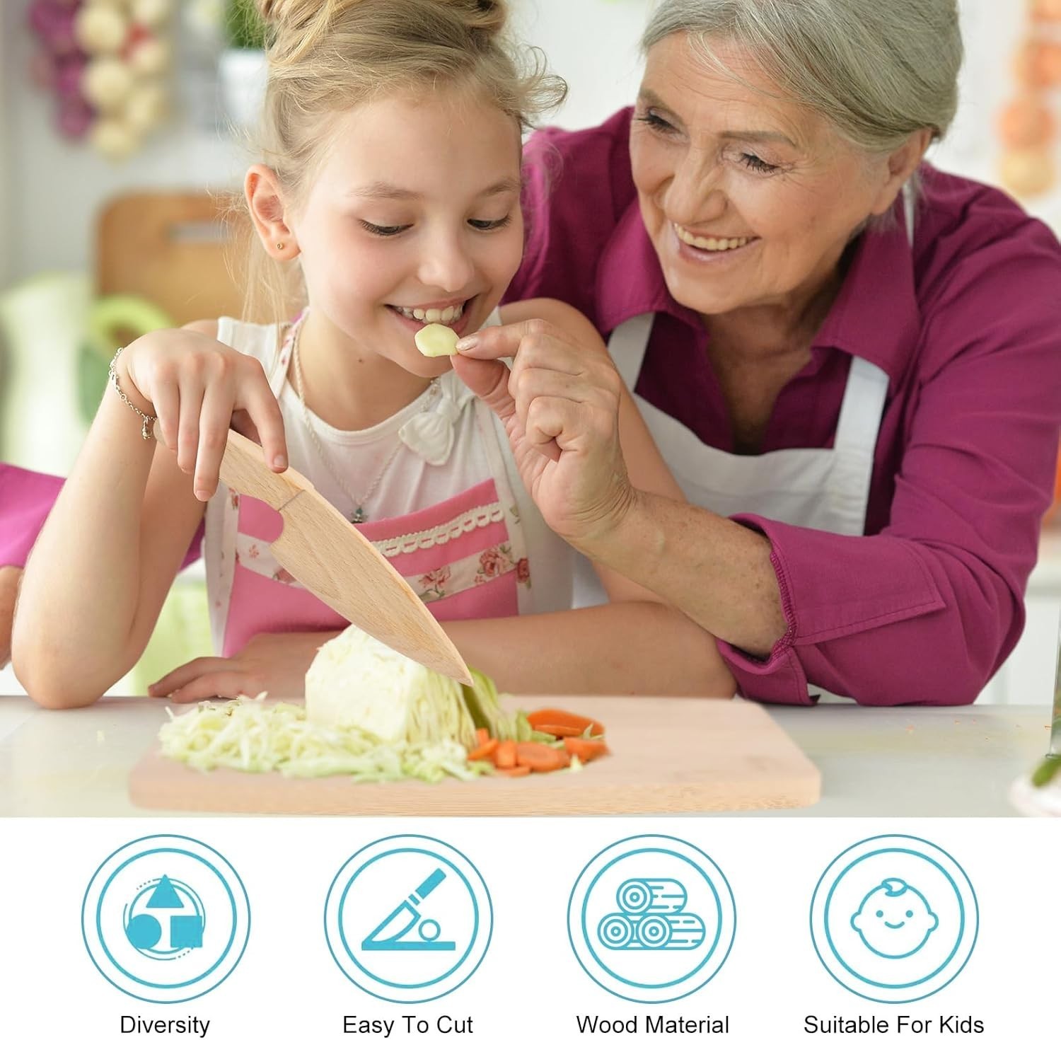 7 Pieces Wooden Kids Knife Toddler Knife Set Toddler Cutting Board And Knife ...