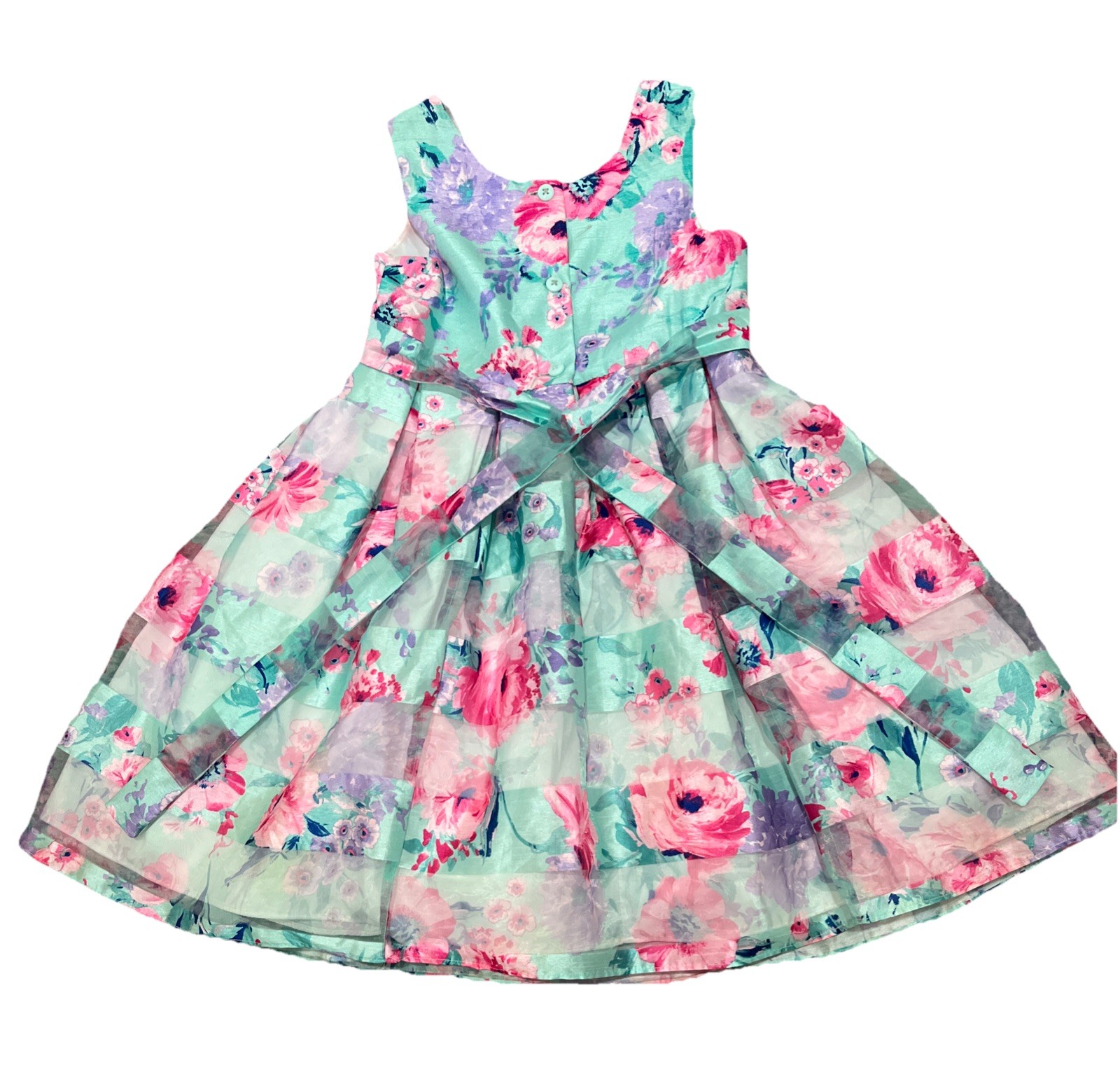 Jona Michelle Dress Girls Size 5 Special Occasion Button Bow TieTulle Fit Flare
