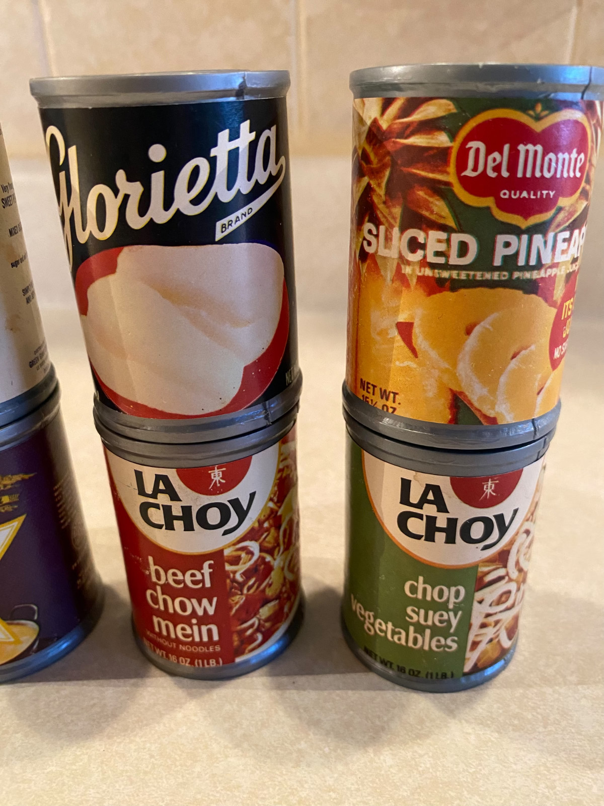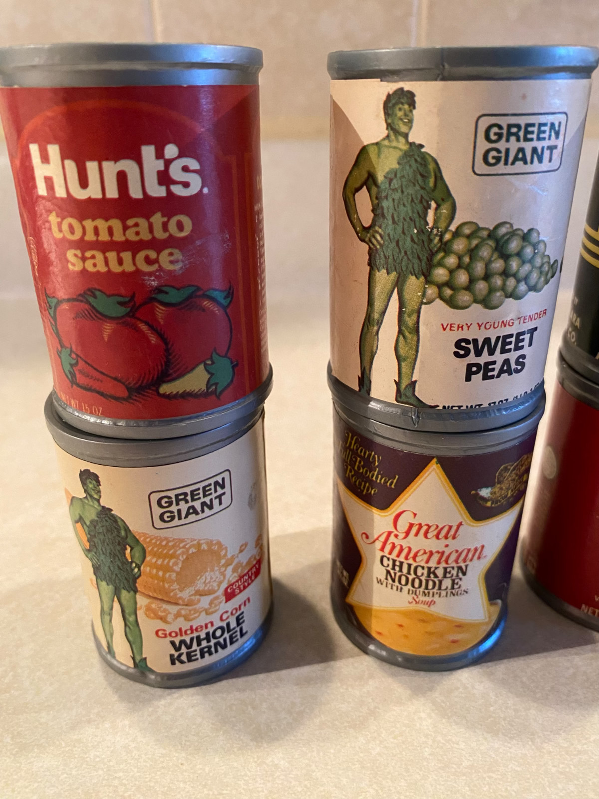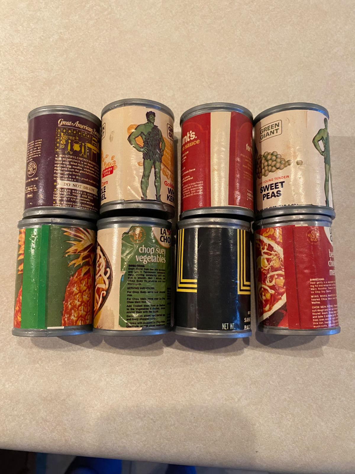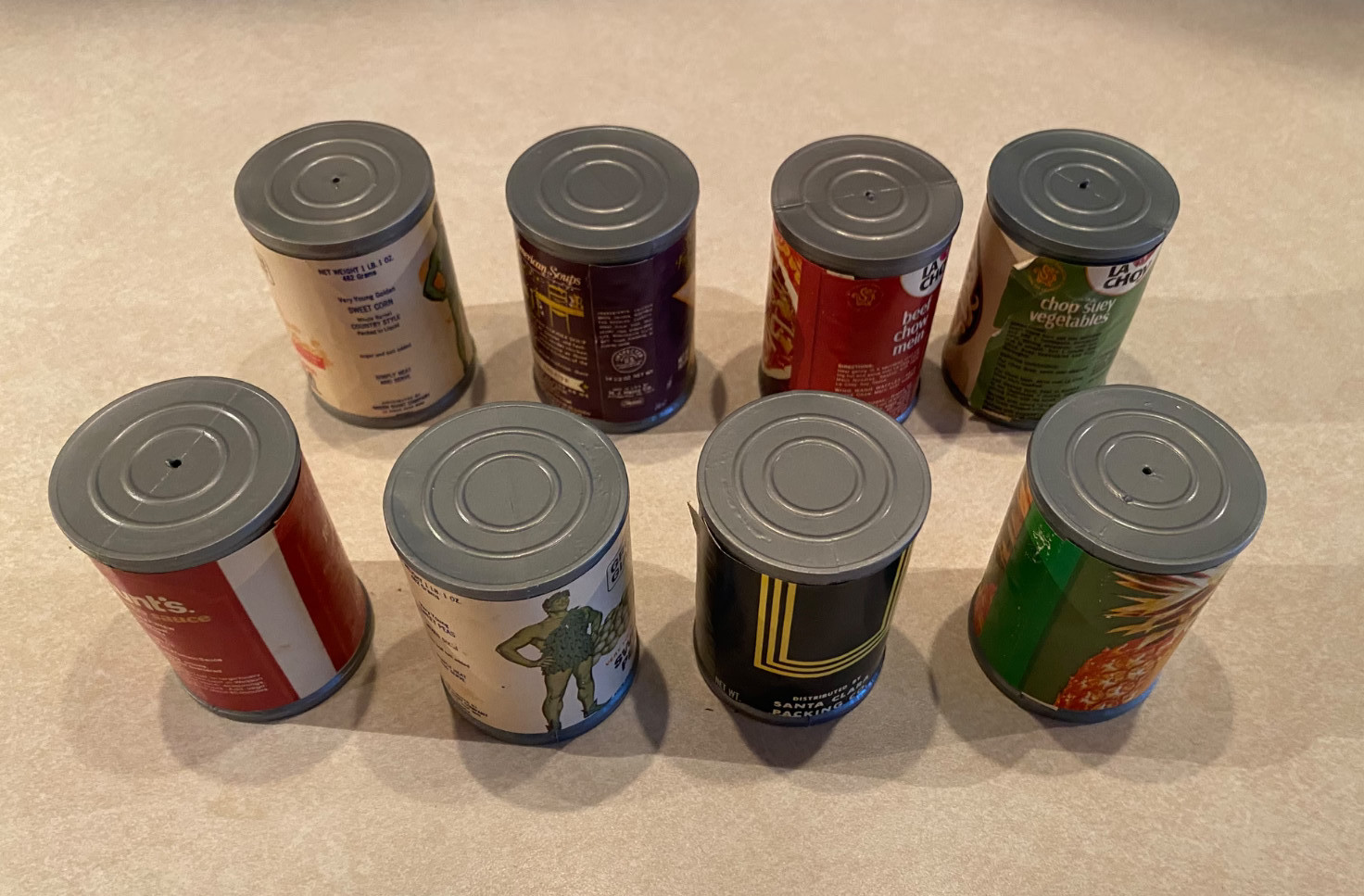 Lot Of 8 Vintage Retro Pretend Play Food Cans 1970s