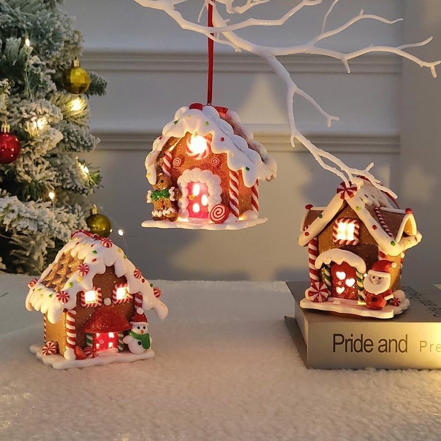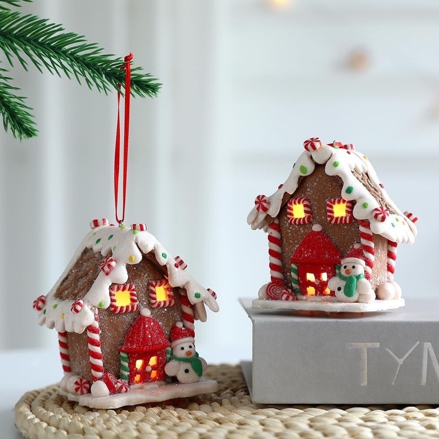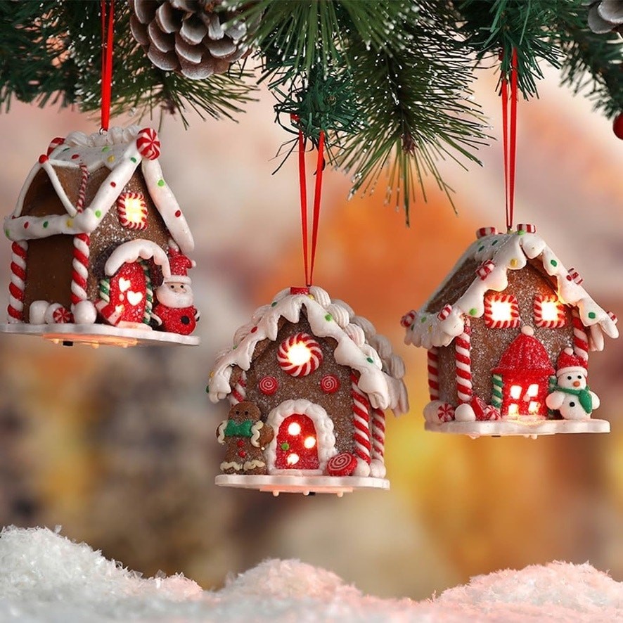 Lighted Gingerbread House Ornament Set - Clay Dough Decor