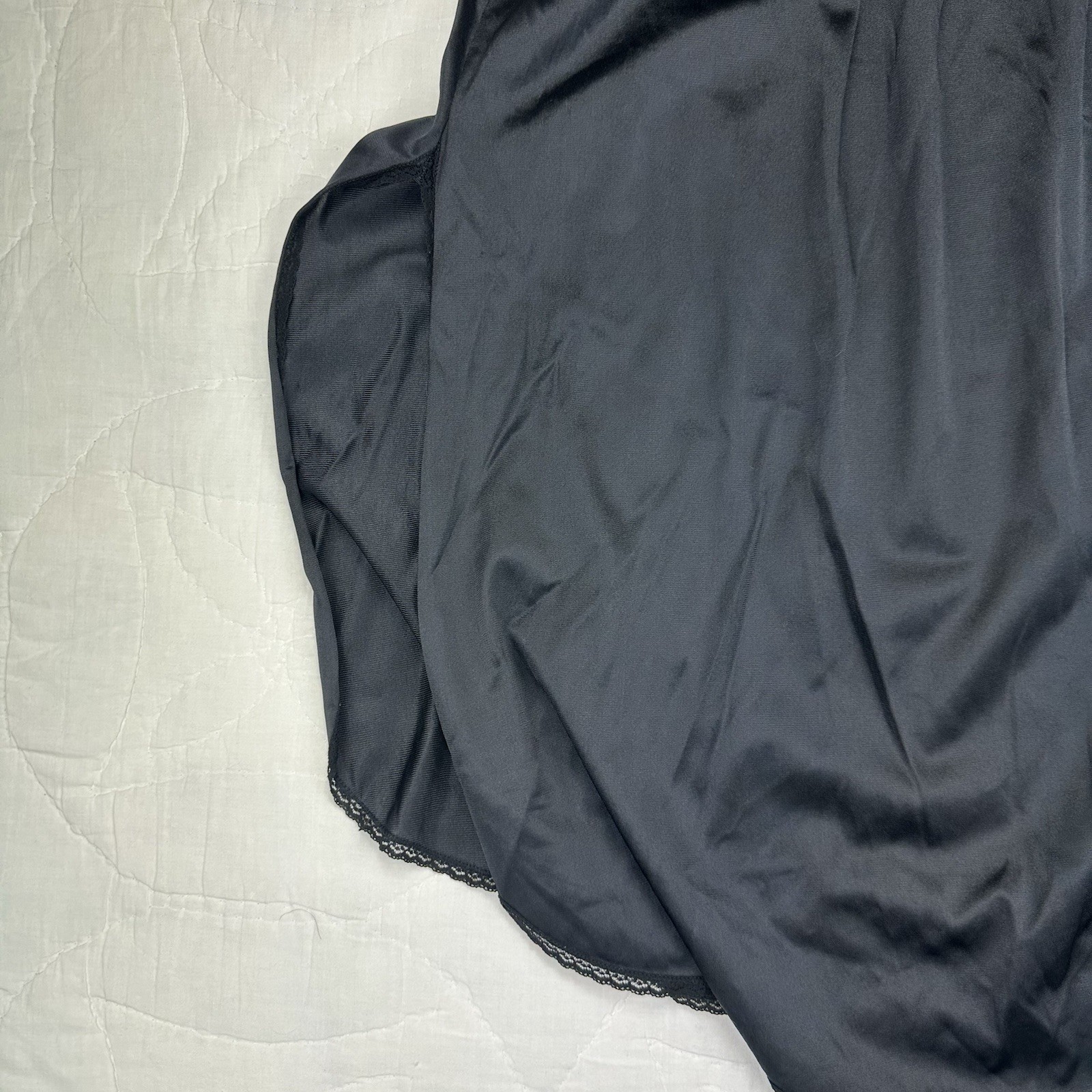 VTG Unbranded Black Satin Half Slip Skirt With Slit Nylon Lingerie Midi Length