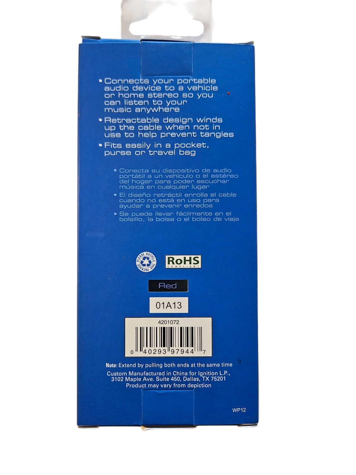 AUVIO Retractable 1/8 3.5mm Audio Cable 3ft .91m 4200991 Red New