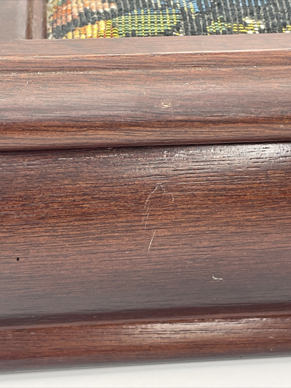 Vintage Wood Floral Tapestry Jewelry Trinket Box Removable Tray Mirror Taiwan