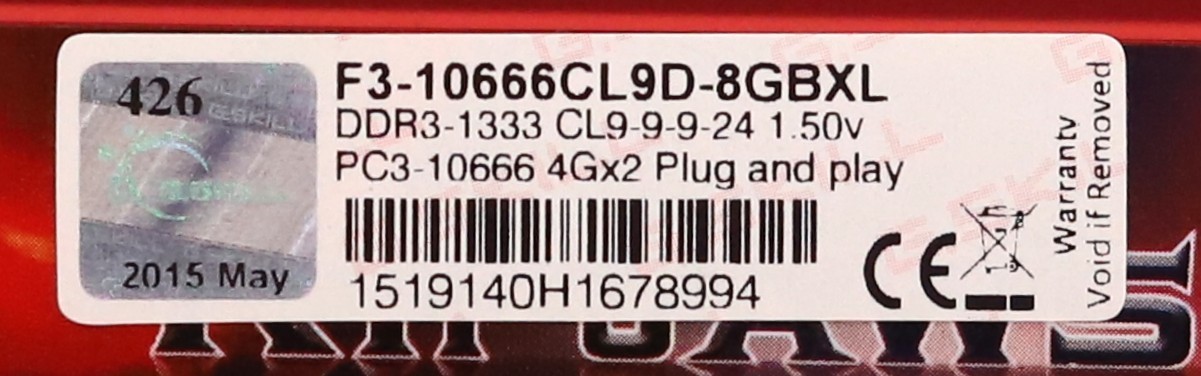 G.SKILL 4GB PC3-10666 DDR3-1333 Non ECC Desktop Memory P/N: F3-10666CL9D-8GBXL