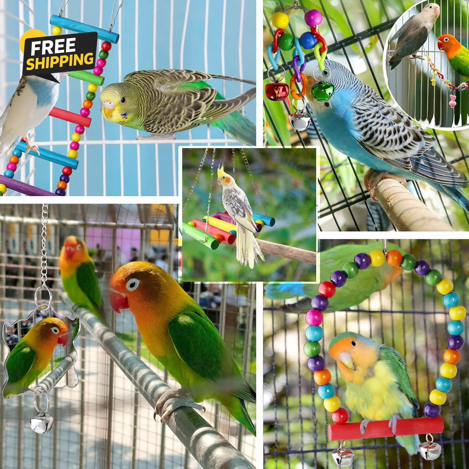 Bird Parakeet Cockatiel Toys, Birds Cage Accessories Swing Climbing Ladders