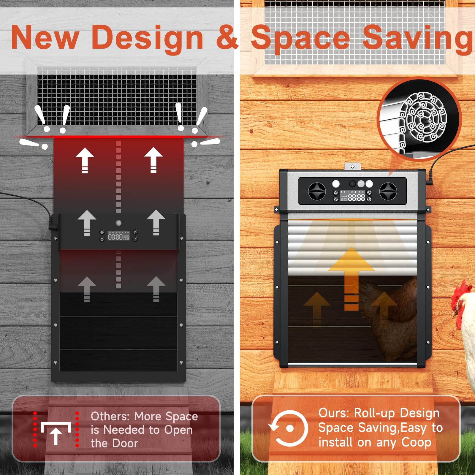 Automatic Chicken Coop Door Solar Powered,4 Modes Auto Chicken Door Solar,LCD...