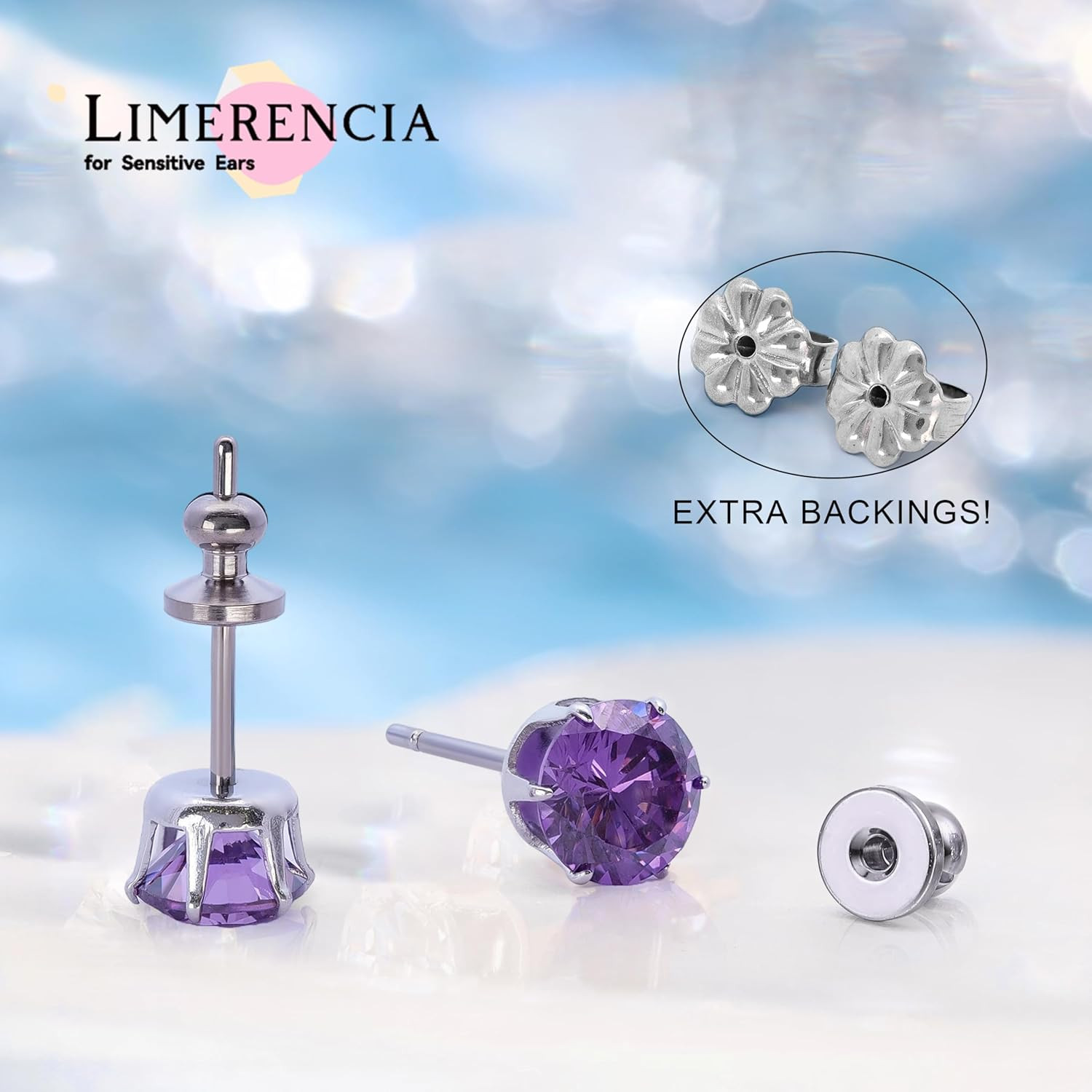 Titanium Earrings Hypoallergenic F136 Implant Grade Studs round Cubic Zirconia 6