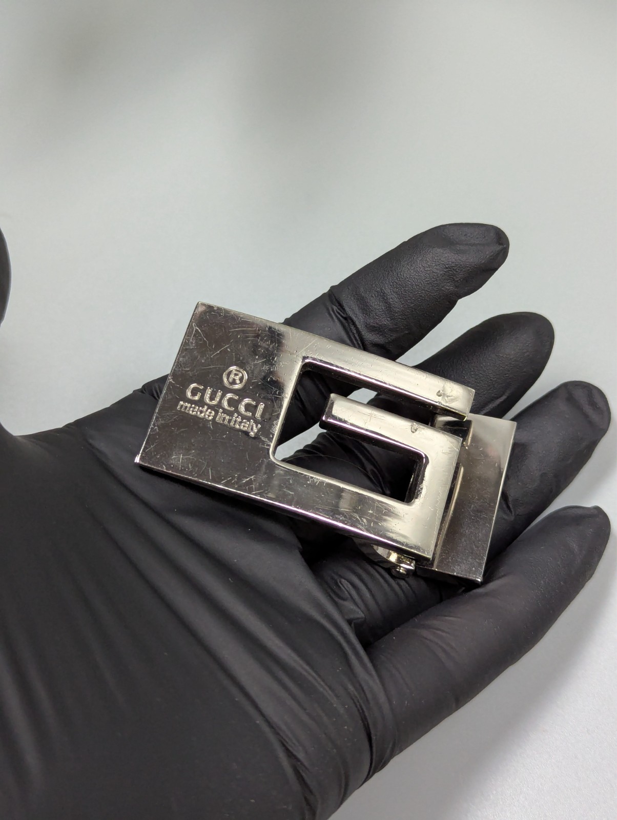 как выглядит Gucci Archive G Logo Belt Buckle Vintage 90s Heavy Solid Metal Italian Hardware фото